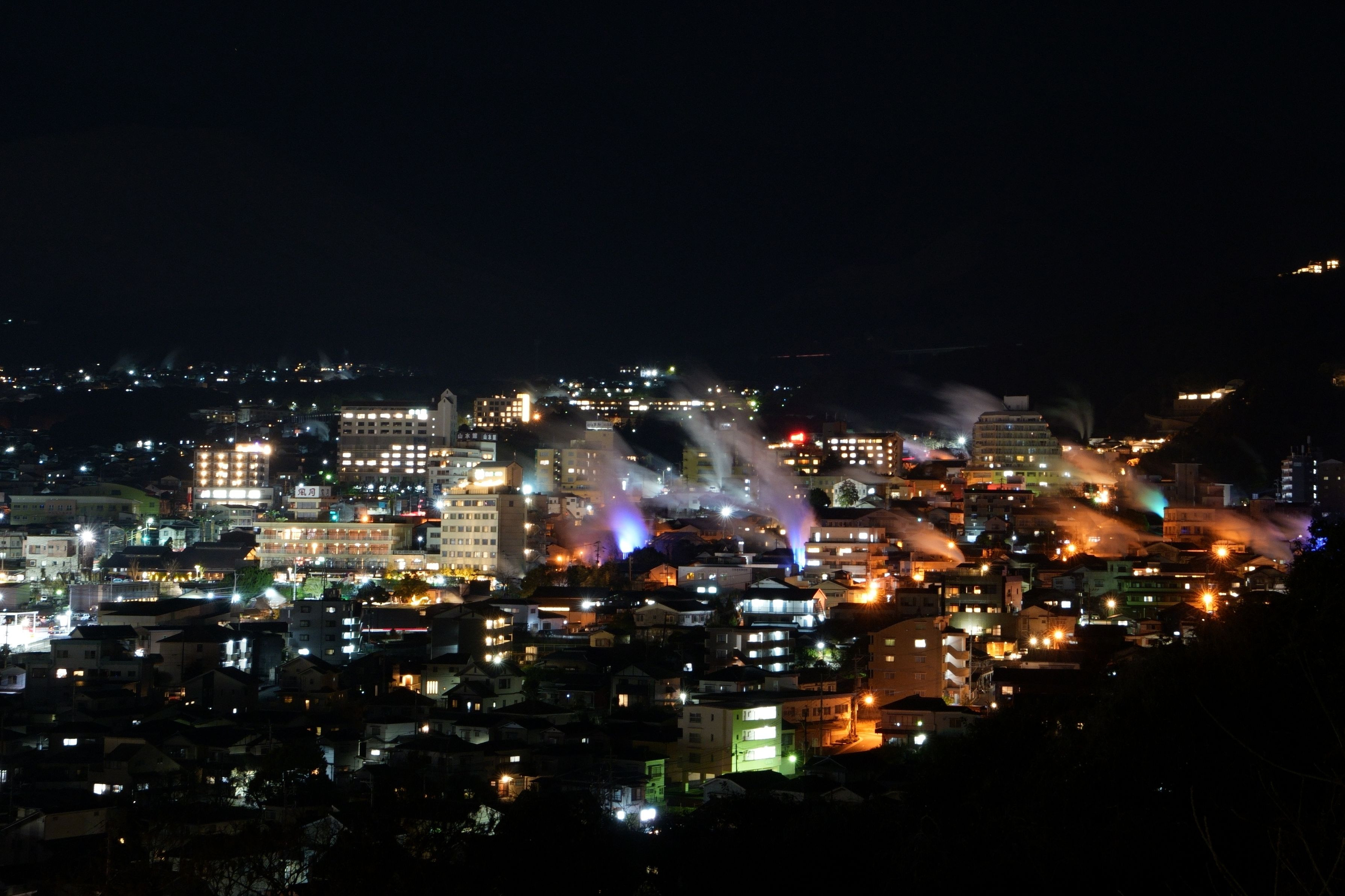 別府湯煙展望台で初の夜景撮影です。 人気のスポットのようで、多くの方が入れ代わり立ち代わり訪れていました。