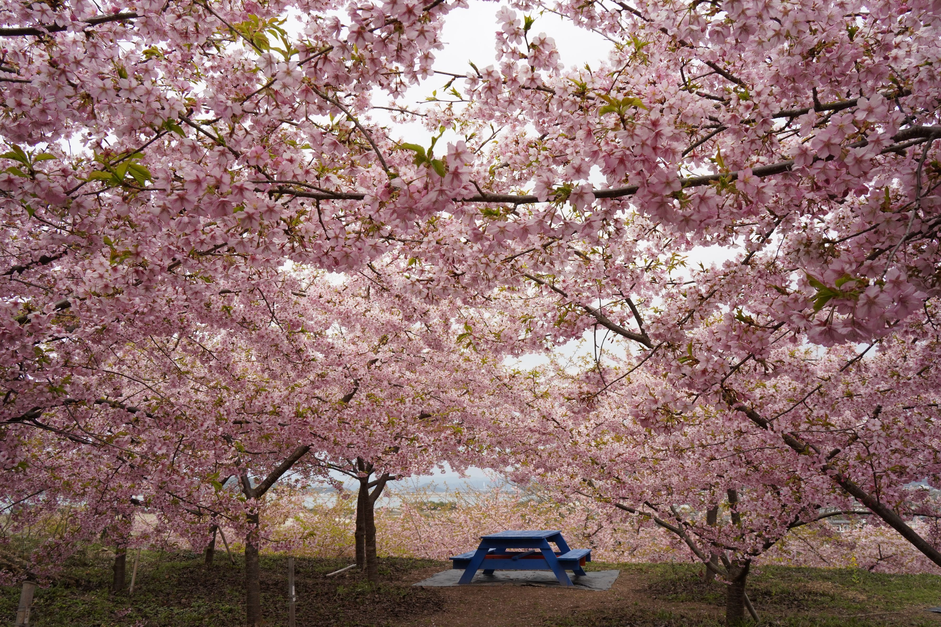 「さくらの特等席にようこそ!」 地元の皆様の手で、河津桜、山桜、薄寒桜が咲き乱れます。 数えきれないほどのメジロたちが、飛び交い、美しさに花を添えます。 #カレンダー2025# #フラワー2025#