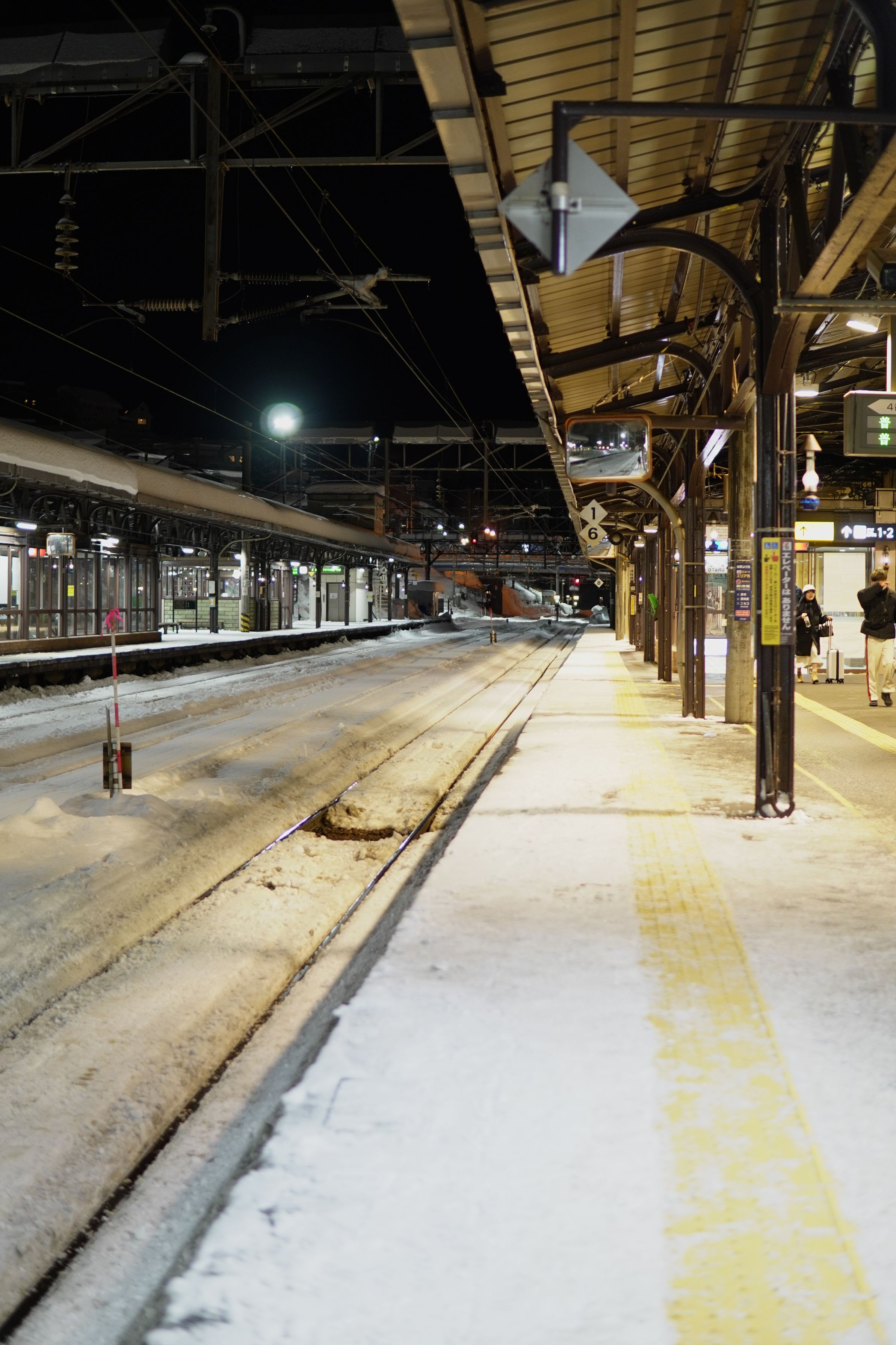 記録的な大雪となった小樽。日没後の小樽港縦貫線を歩いてきました。 運河から一本港側ですが、観光客も少なく、本当の小樽の冬が残っていました。 小樽駅ホームです。