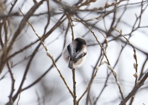今朝の朝活 俊敏すぎて追えず出勤時刻迫り 駐車場に戻って来たらエナガ発見 けど近寄れず残念