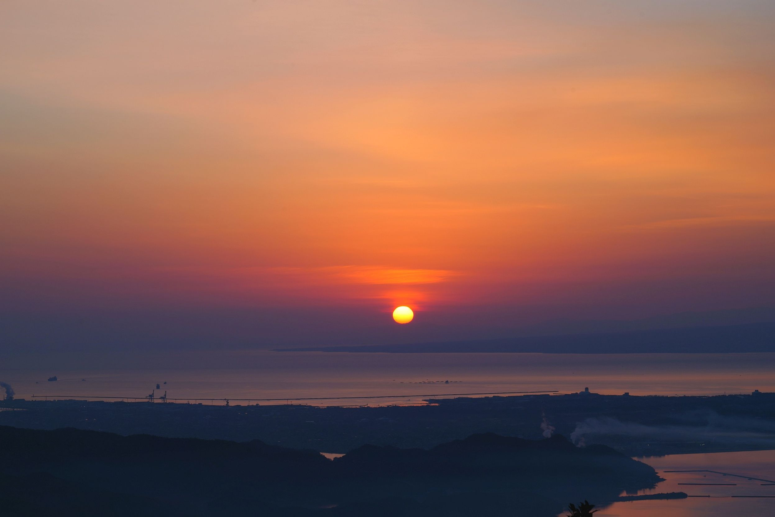 朝日です。 上から順に朝焼け、朝日、大山山麓、美保湾、境港市、美保関町、中海。 #島根県# 撮影地 松江市美保関町