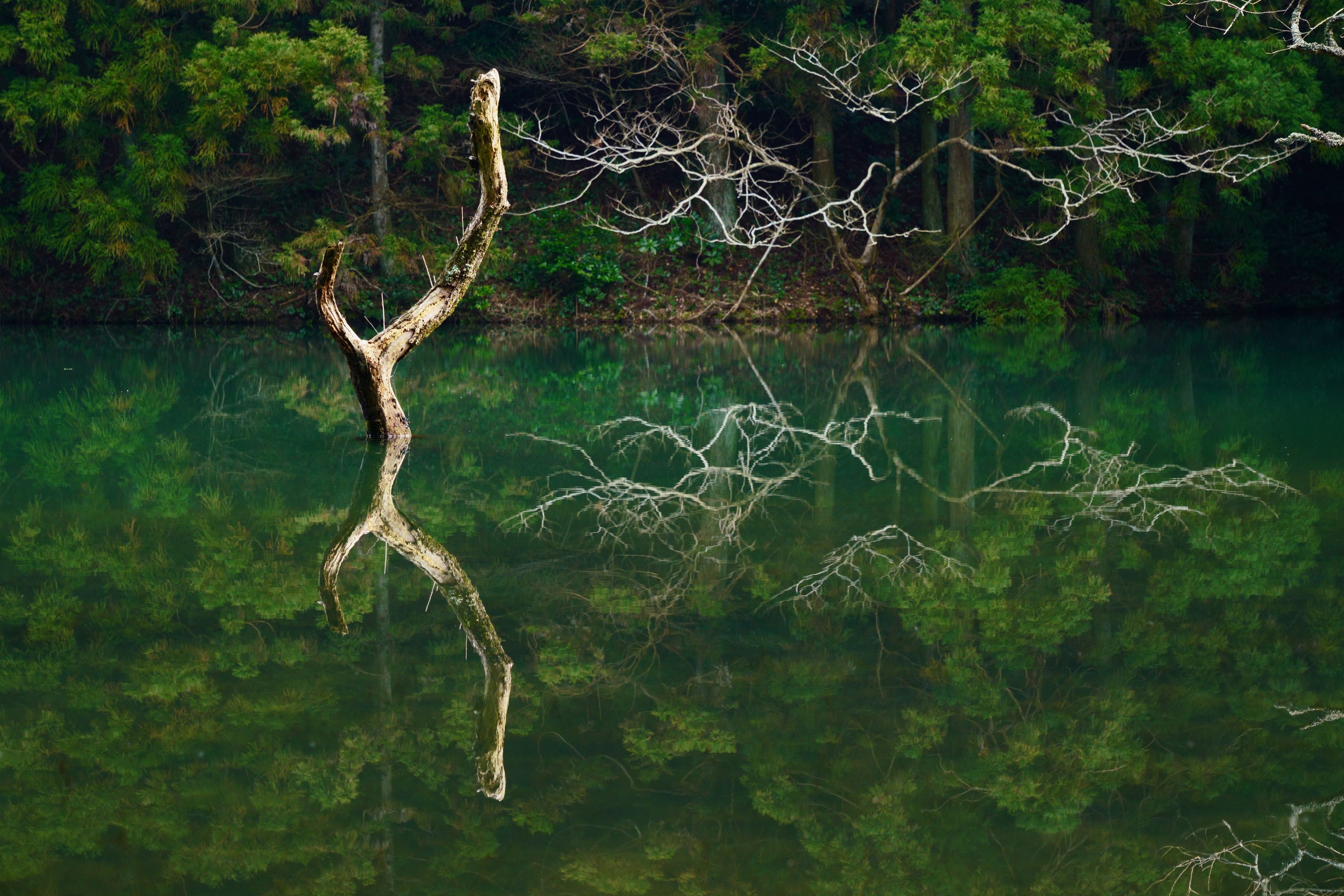 山奥の溜池、静かすぎて怖いくらいでした