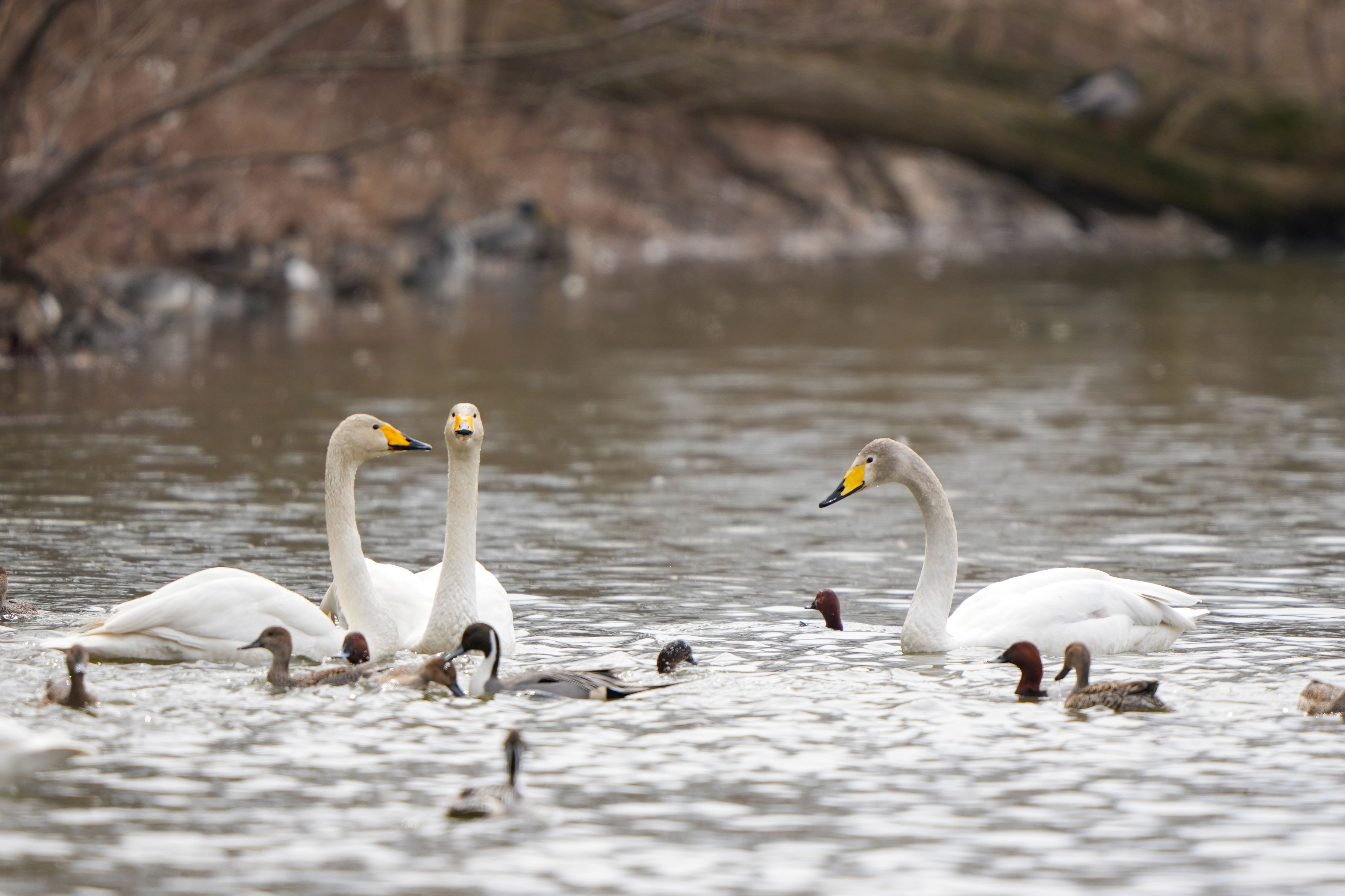 ① 珍しくキャンプ場でお食事するマガン。左の羽を怪我してるので下がってますね。 ② 昨年生まれた国産オオハクチョウ(右)。頭はまだ黒いけど羽は真っ白になりました。 そしてそろそろ卵を産む季節。今年は何羽生まれて何羽生き残るのか・・・
