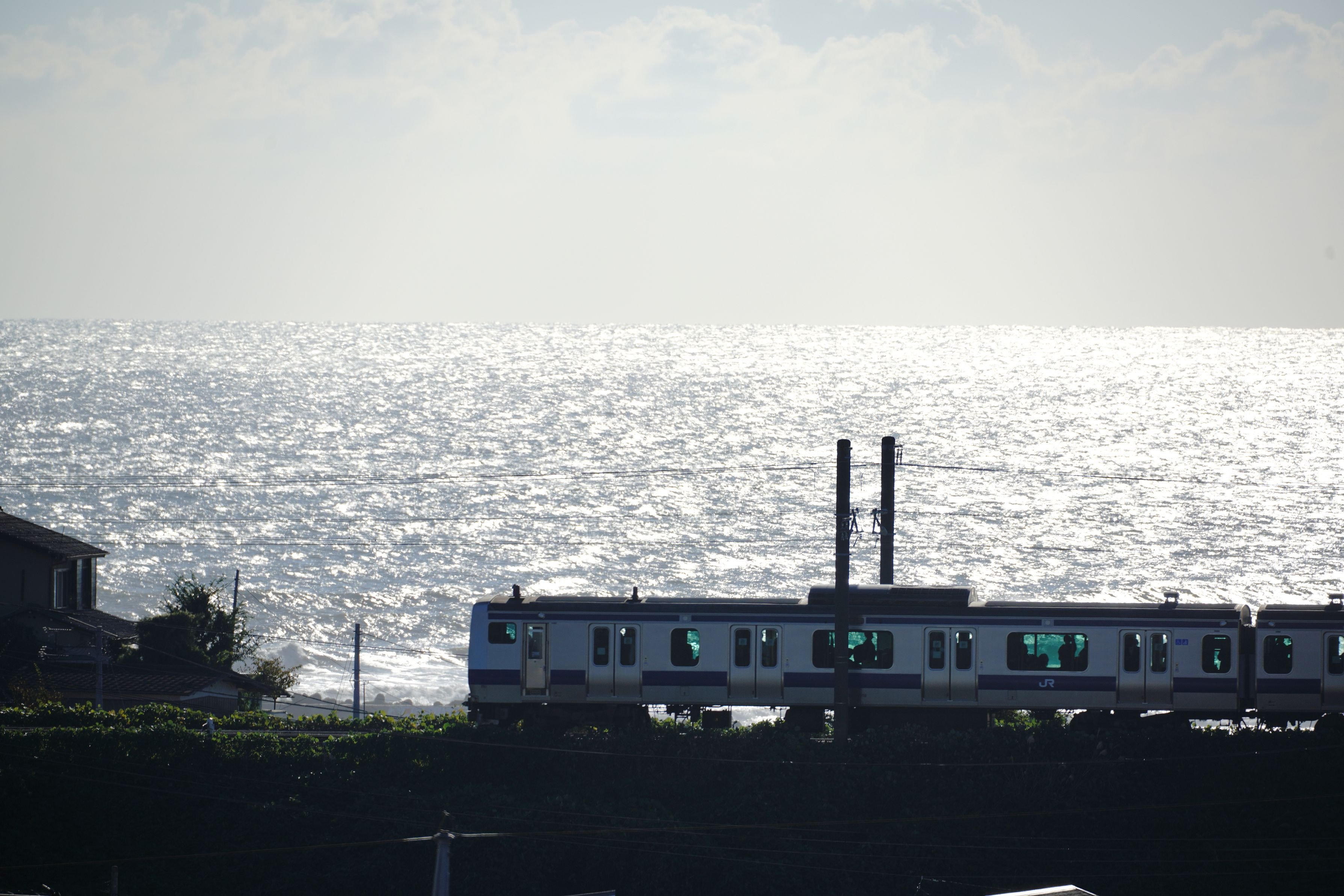 ギラギラの太平洋とJR常磐線。 過去の写真で失礼します。 茨城県日立市 FE 100-400mm F4.5-5.6 GM OSS