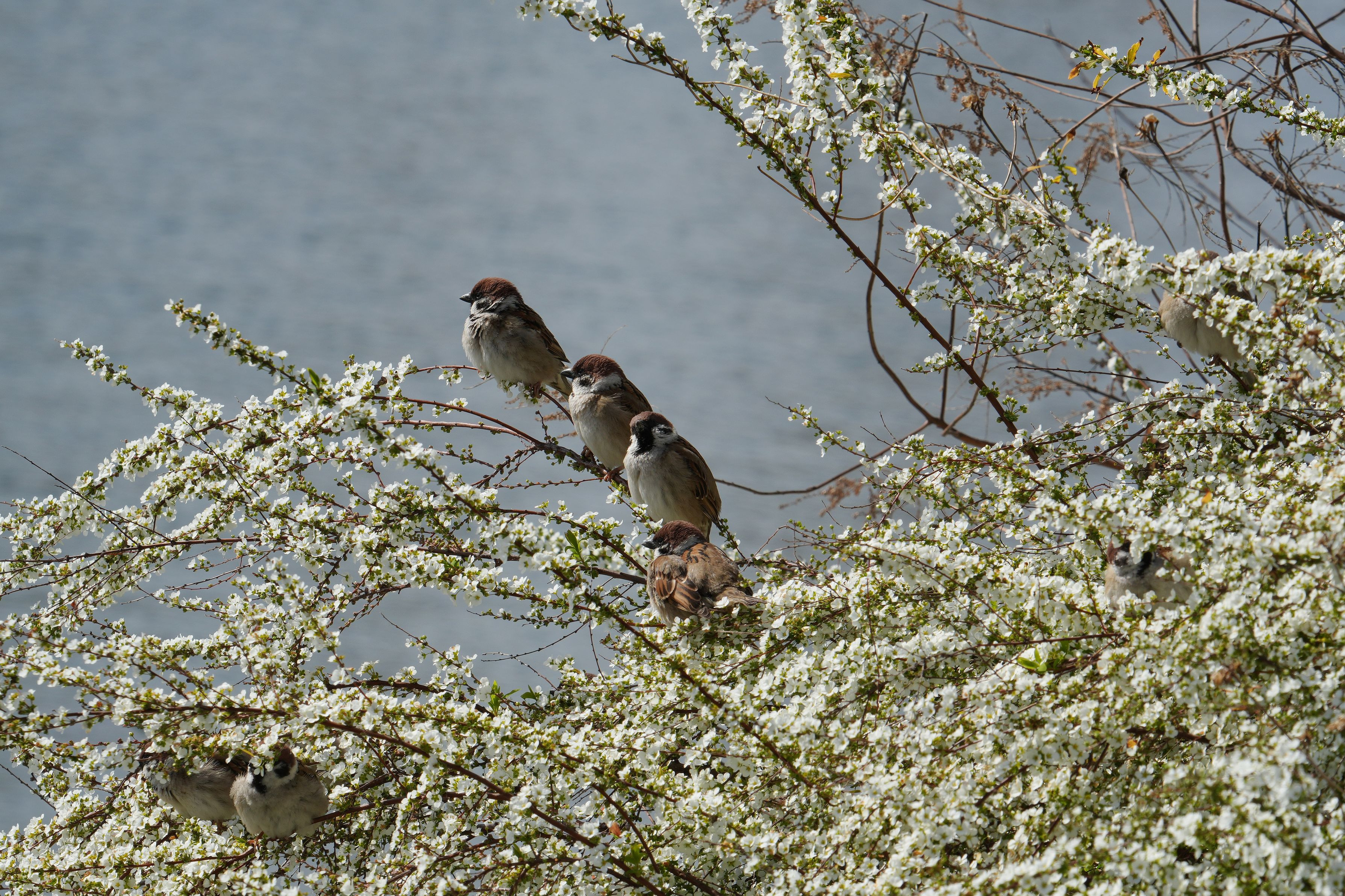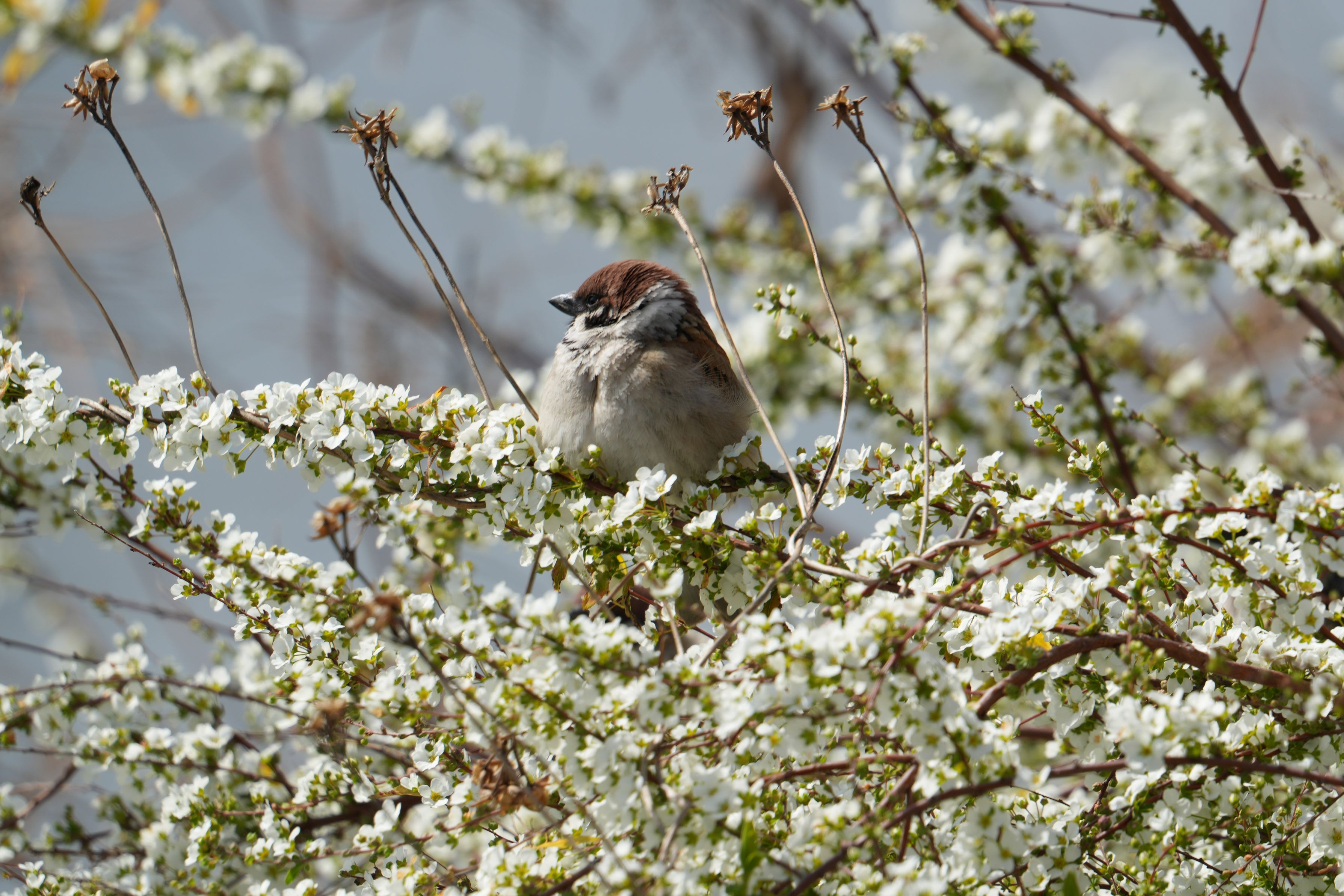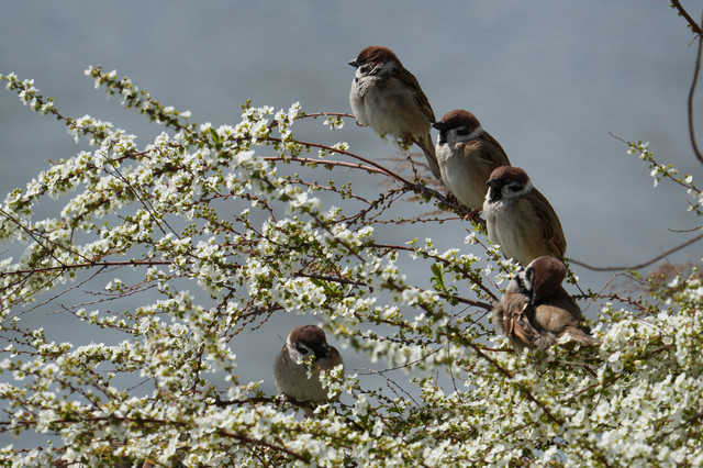 スズメさんの休憩所になっている雪柳