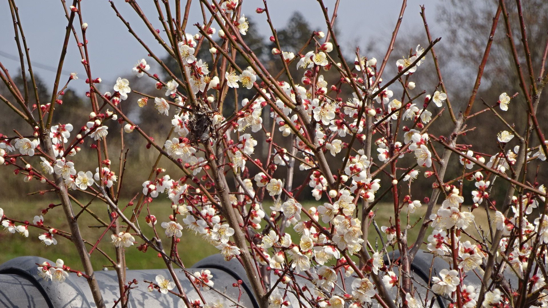 雪も降る早春に咲く白梅です。