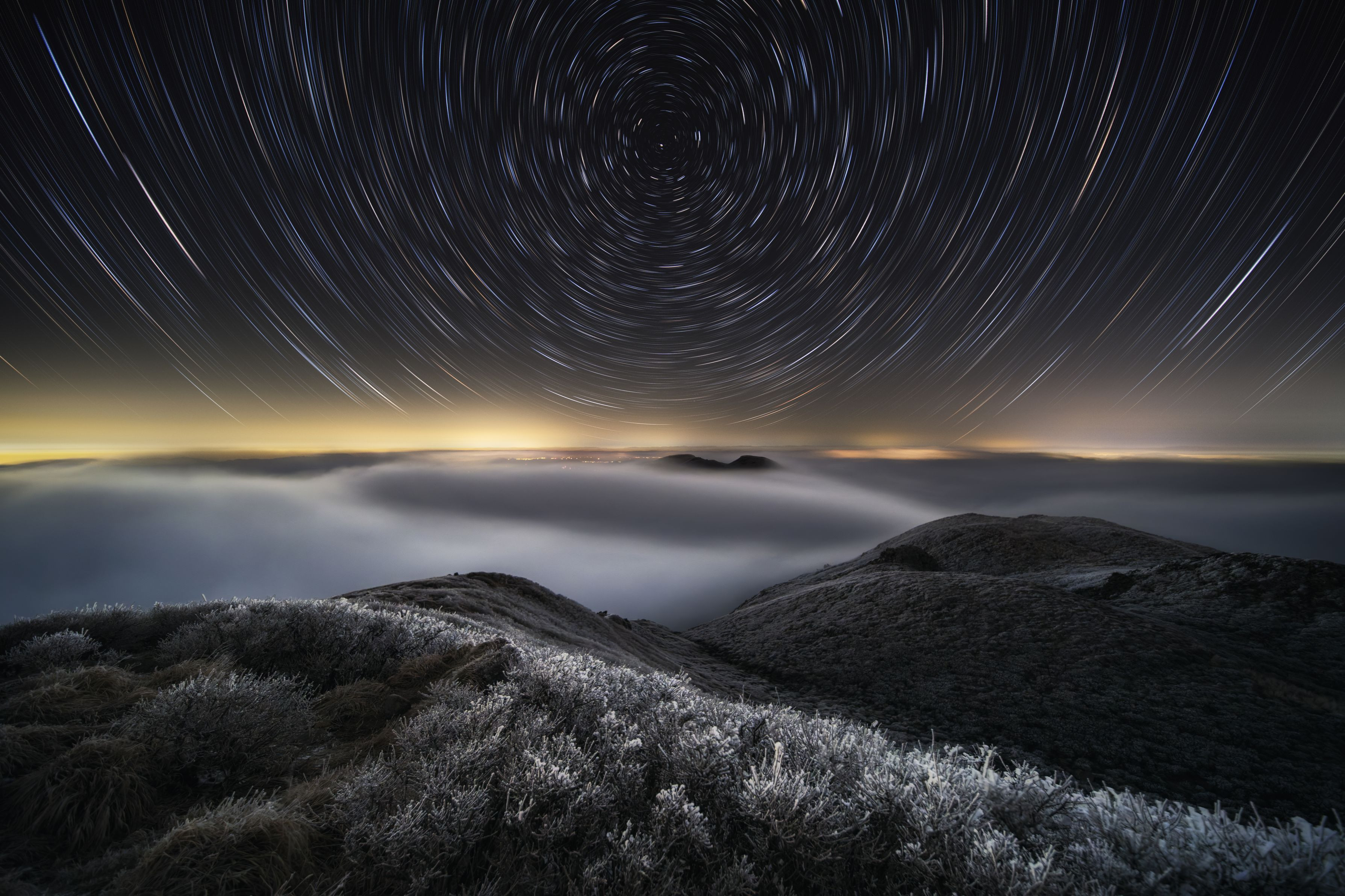 360°霧に覆われている中、視界が晴れるのをひたすら凍えながら待機、 視界が晴れると雲海の上に満点の星が輝いていました。