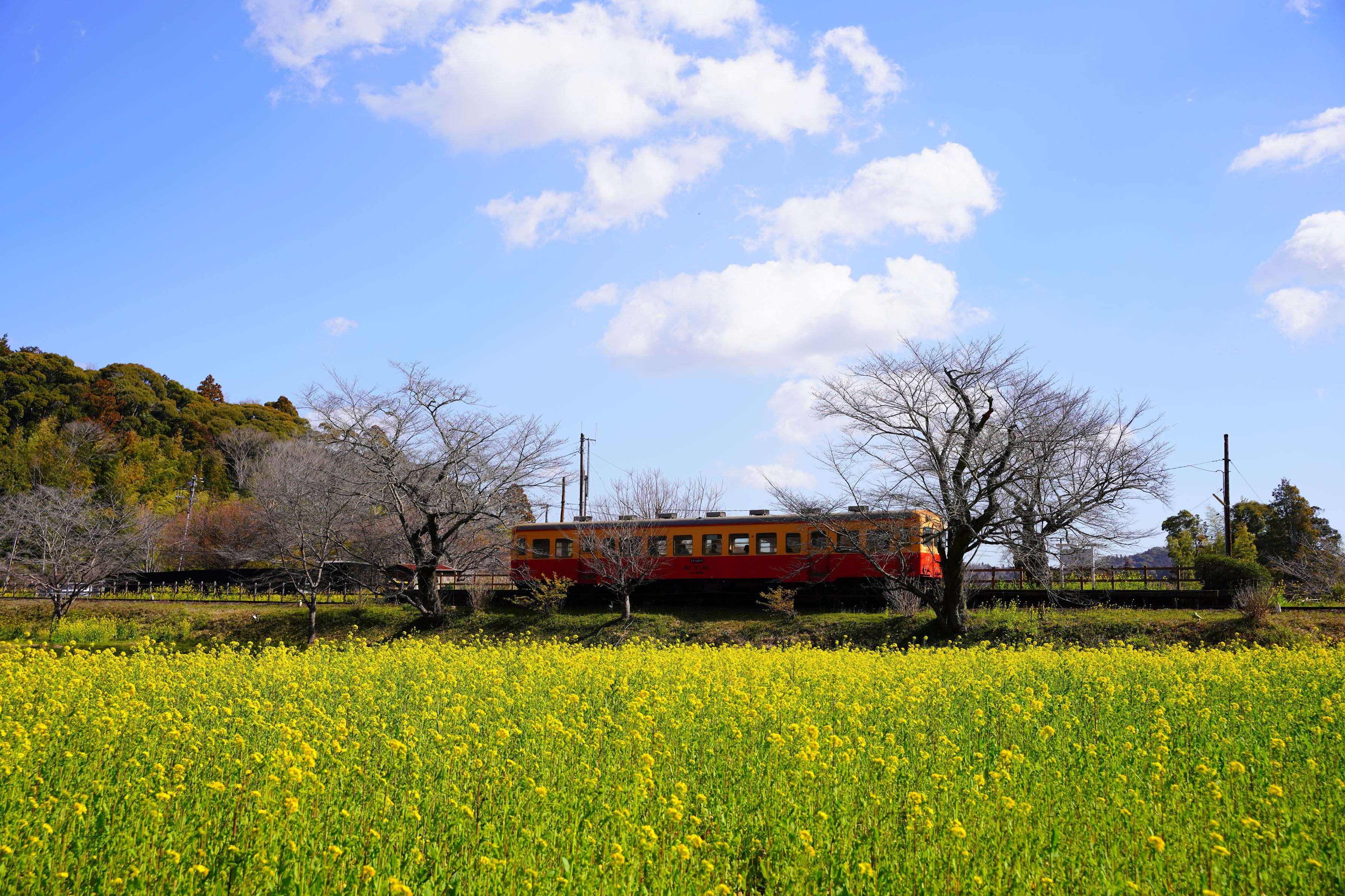 3月20日 小湊鉄道飯給駅 桜の状況確認で出かけた小湊鉄道。 桜はまだまだ先の様な感じでしたが菜の花が綺麗に咲いて居ました。 カメラマンもいなく一人場所選びが出来ました。 天候も持ちこたえてくれています。