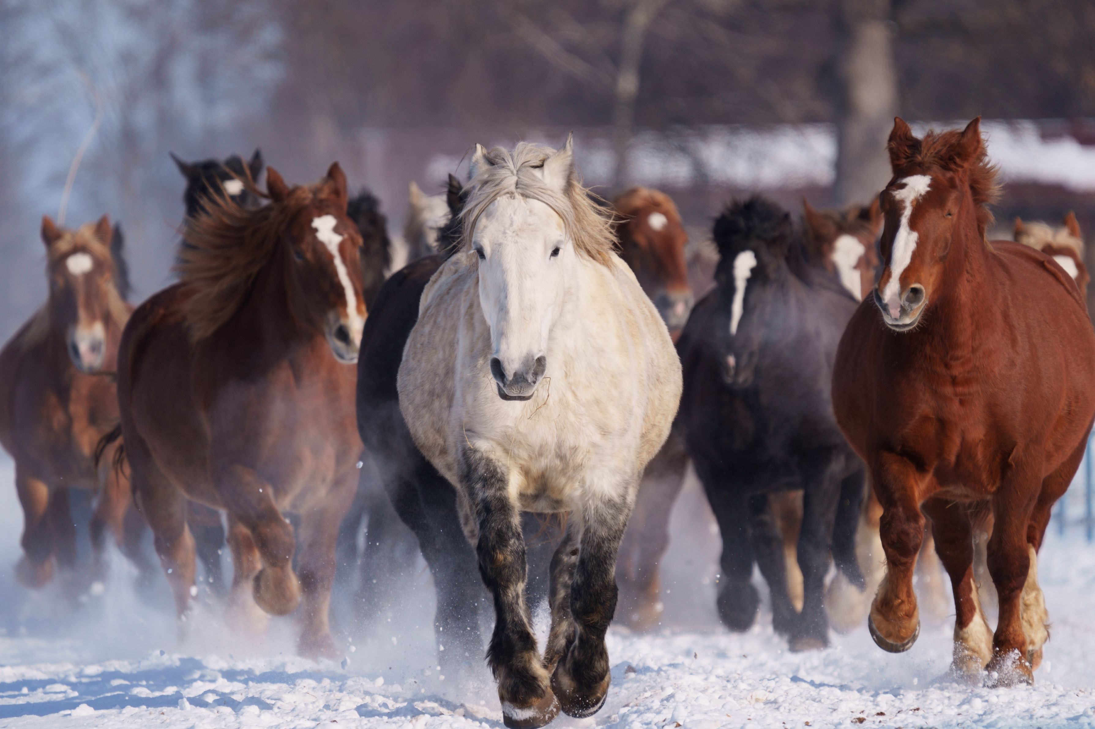 帯広音更町では1月下旬からばん馬繁殖牝馬の運動不足解消のため朝運動を行っています。新雪をかけチラシ、馬の息と馬から上がる蒸気、迫力満点でした。