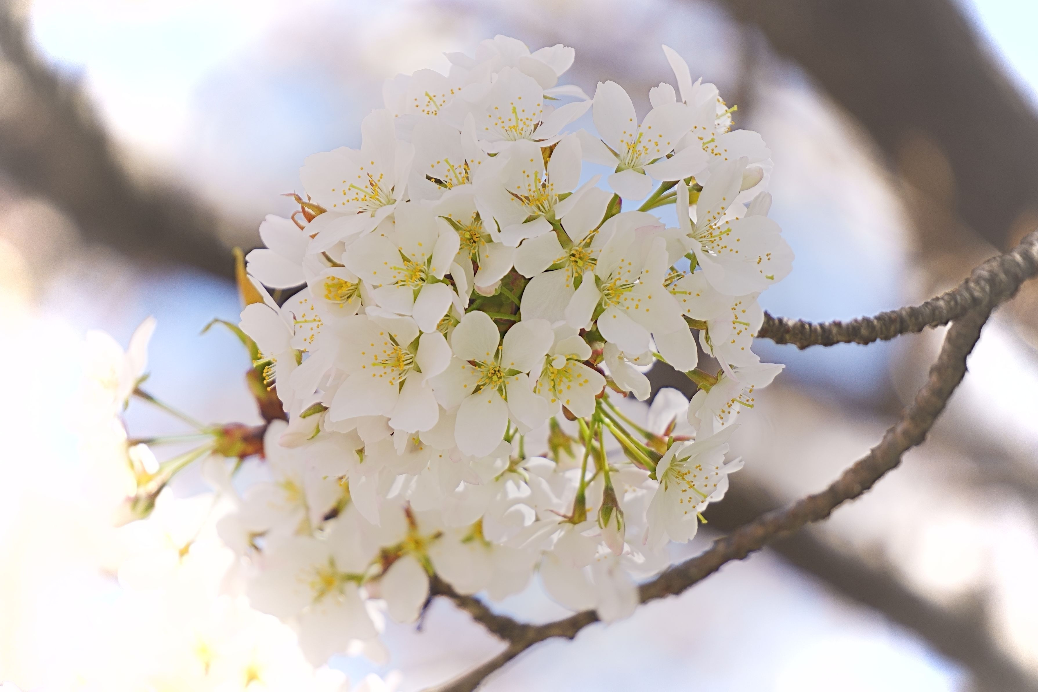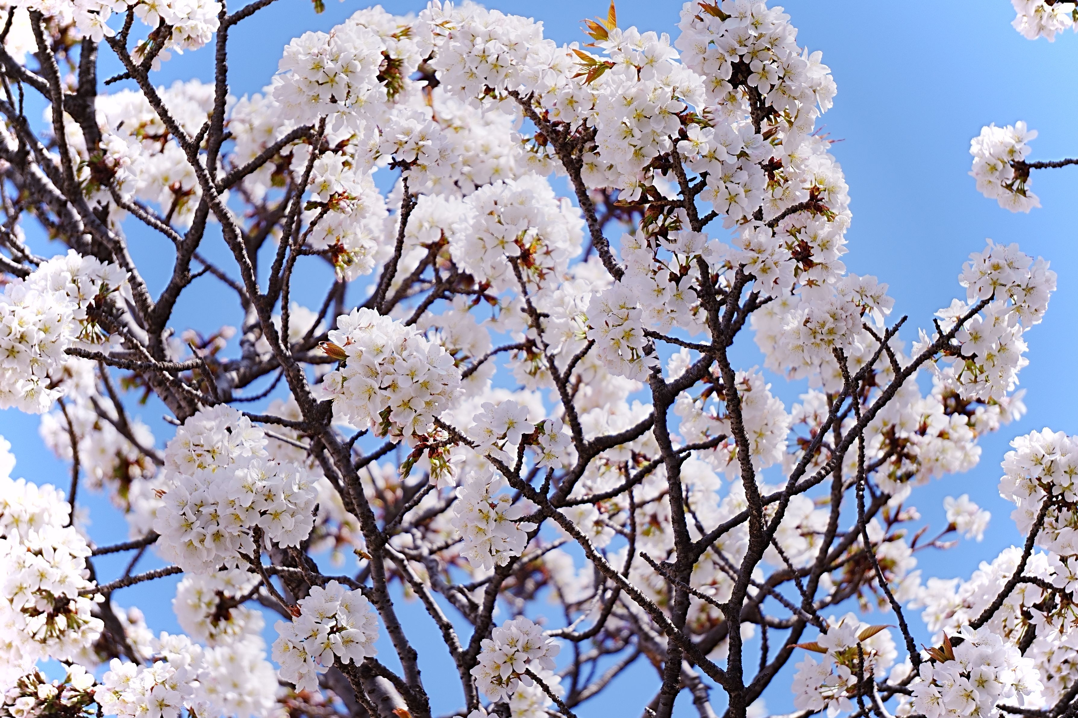 近所の桜通りにて。水玉桜?(染井吉野と野生のマメザクラとの間に生じた自然雑種と推定とのことです。)