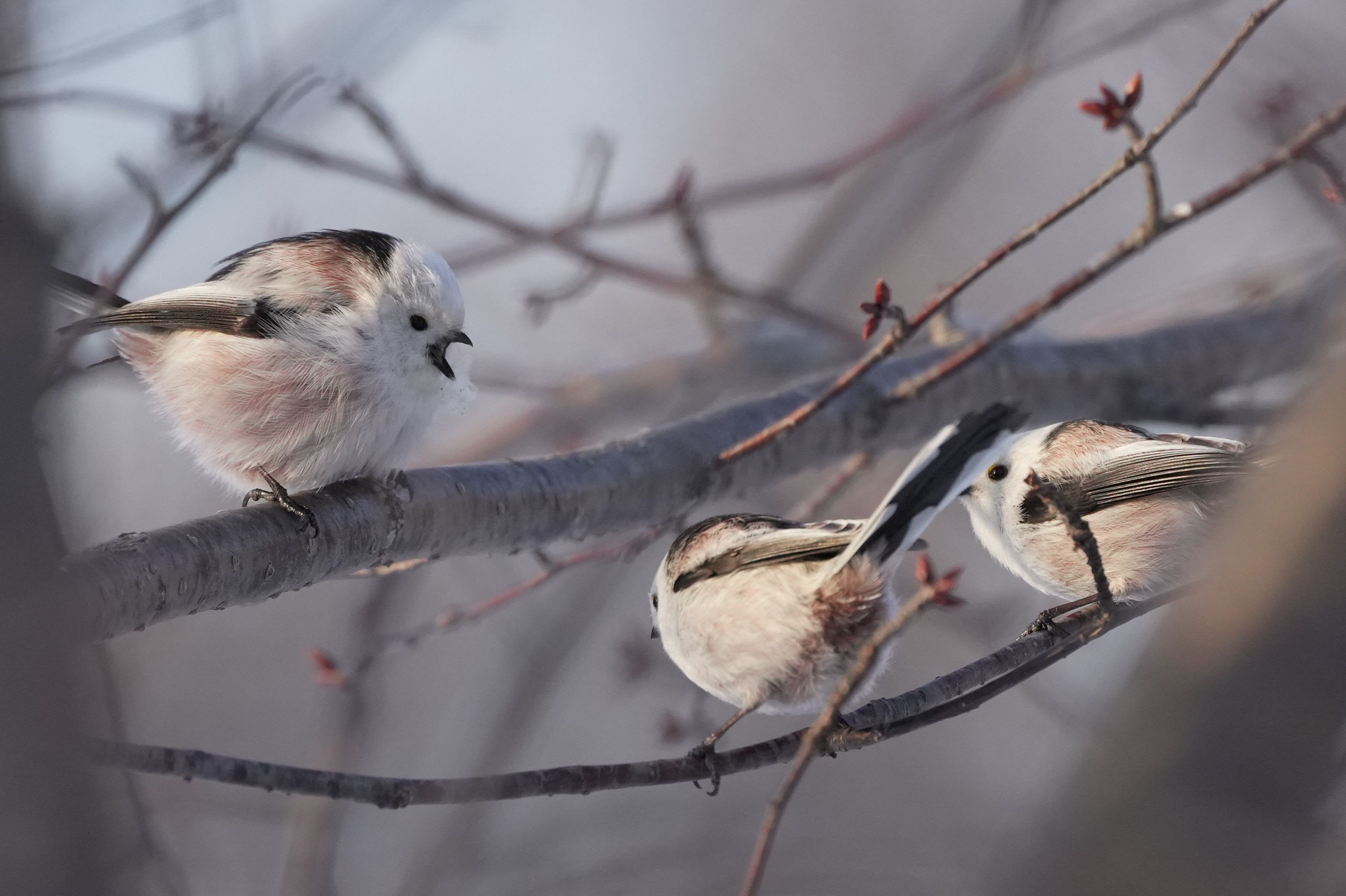 シマエナガが樹液を吸いに来てくれました。