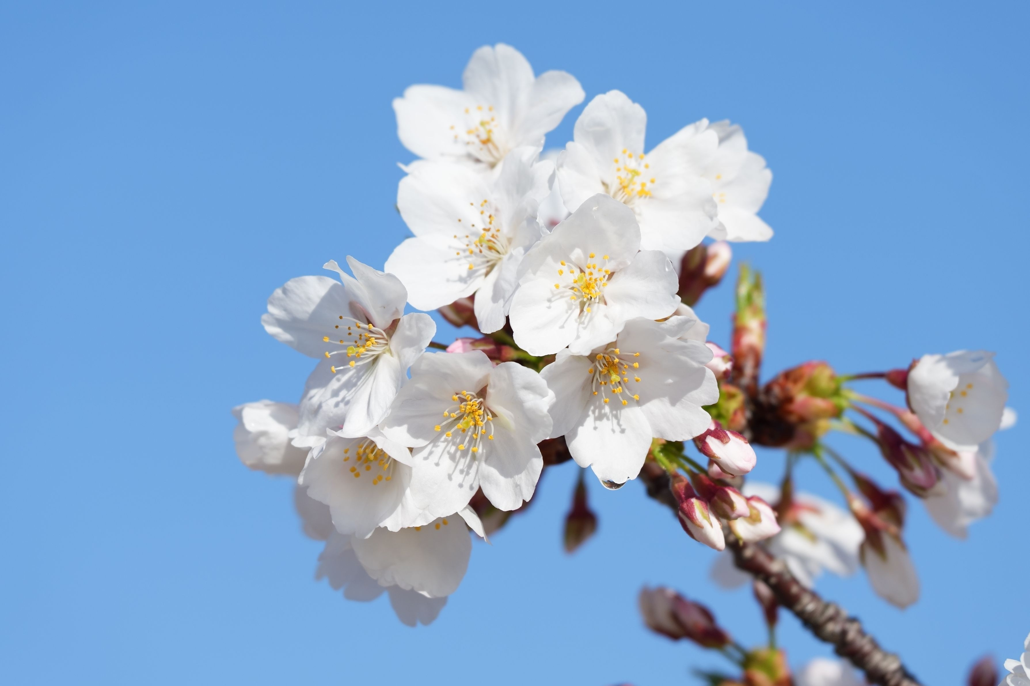 Fresh cherry blossom with clear blue sky just after rainfall, Aichi Pref.