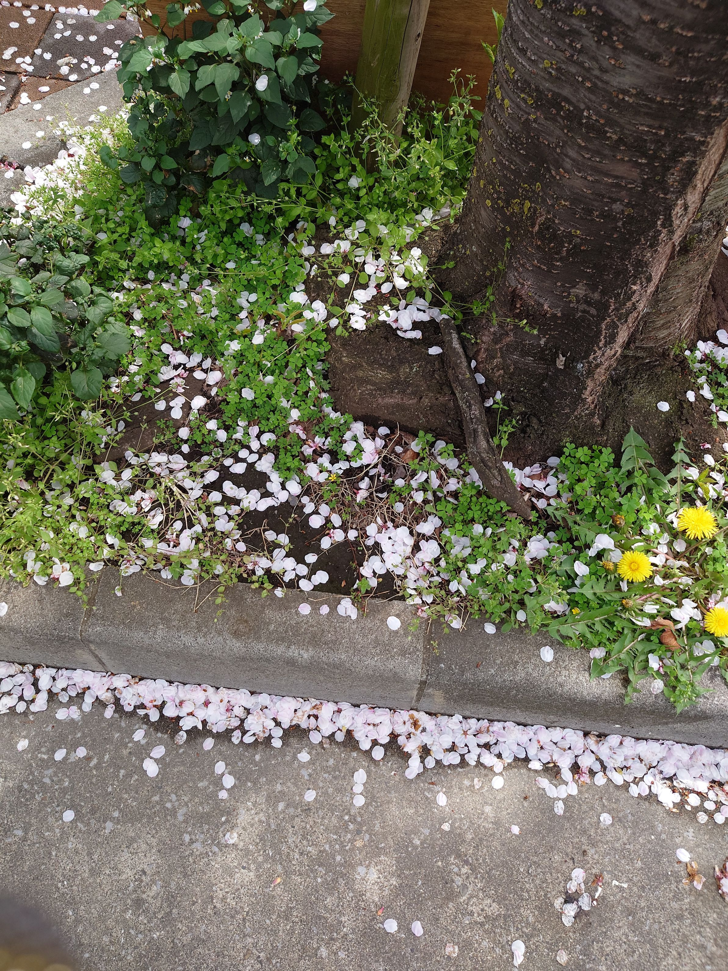 足元にも鮮やかに散った春の嵐が残した足音がさんざめくという事を撮影しました。
