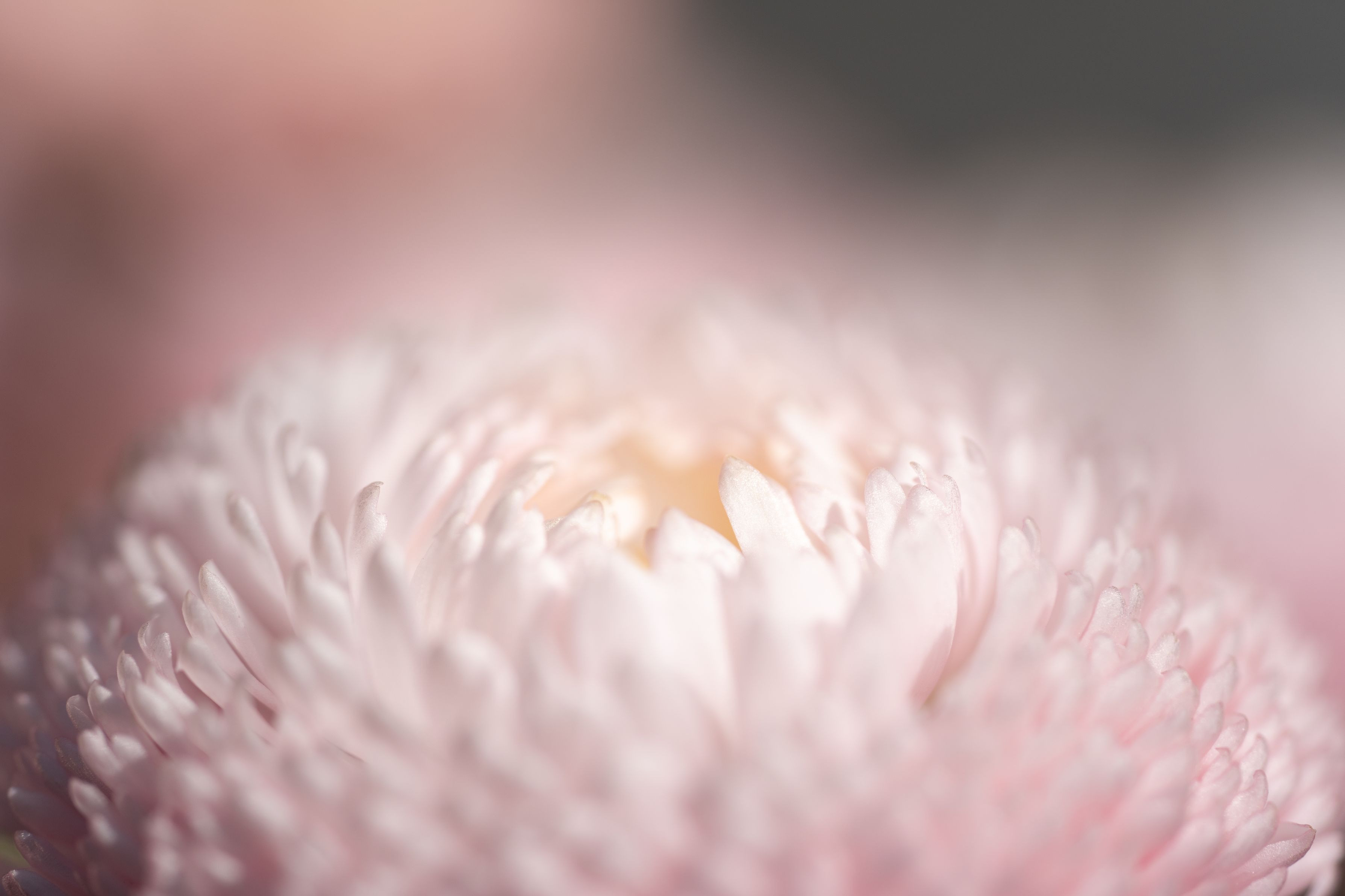 花壇に咲いた花をマクロレンズで撮りました。 淡いピンクと相まって、ふんわりとした写真になりました。