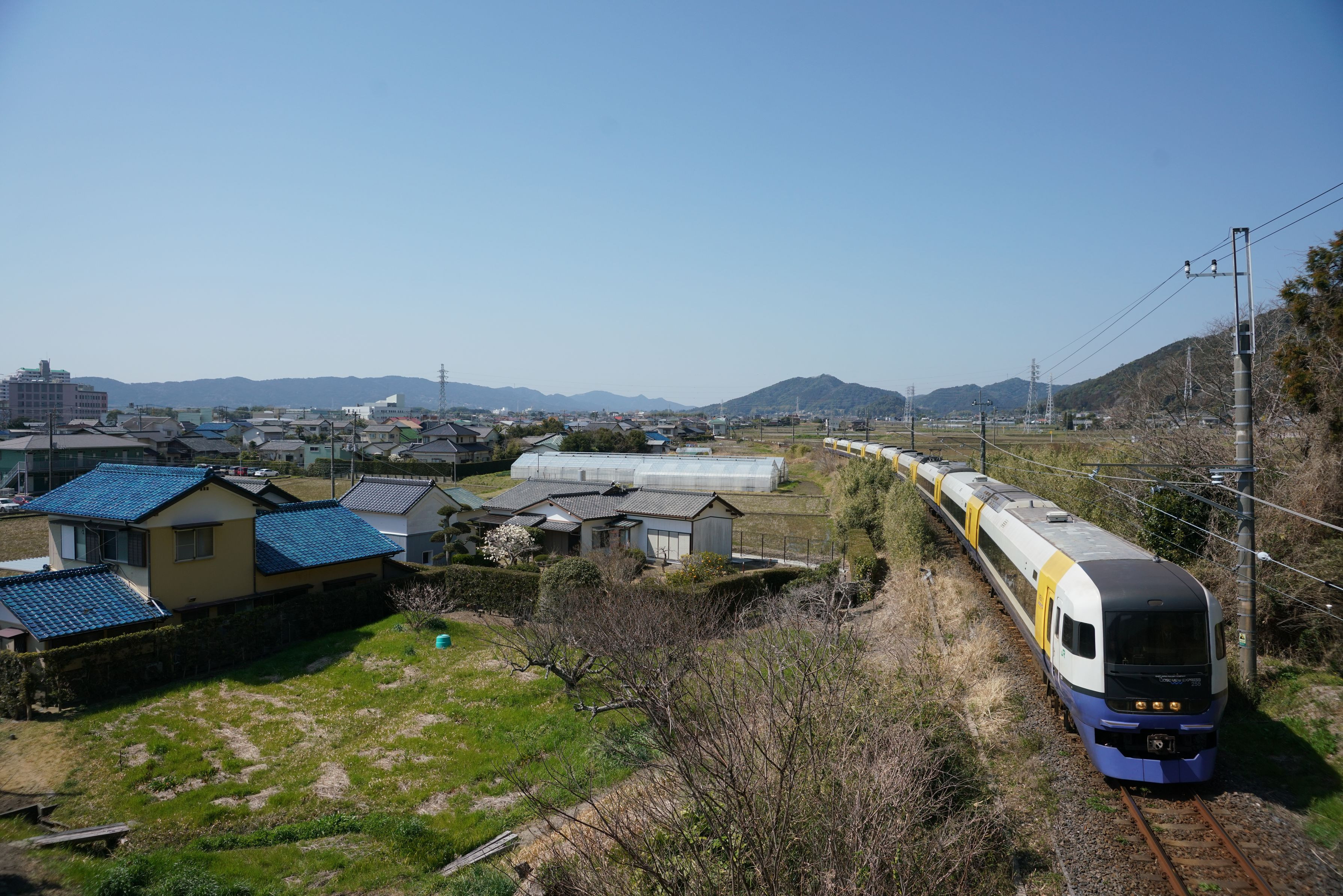 鴨川市の郊外を走る 255系 特急わかしおです。