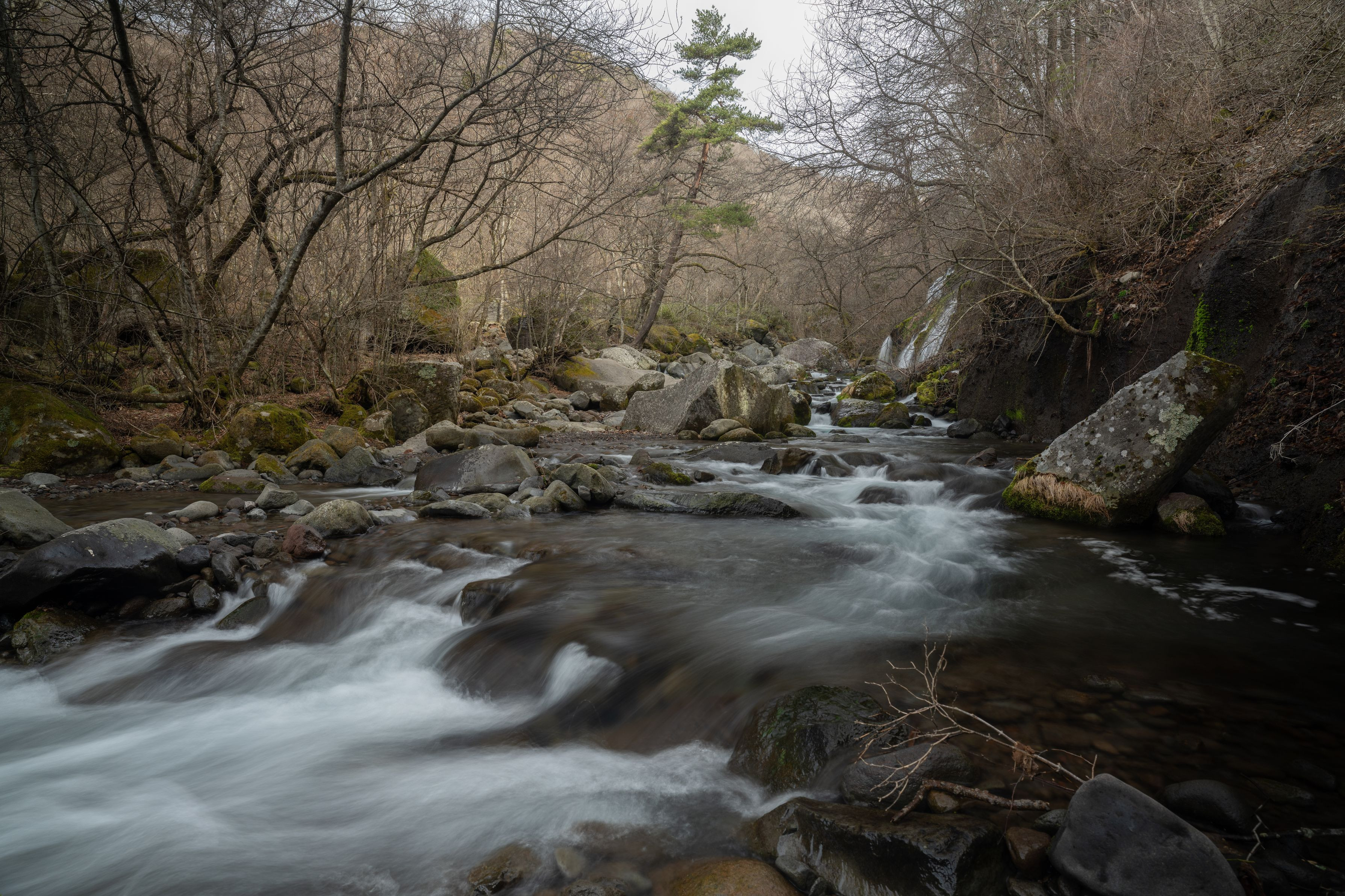 雪融け水で水量が増えた渓流は、勢いを増して