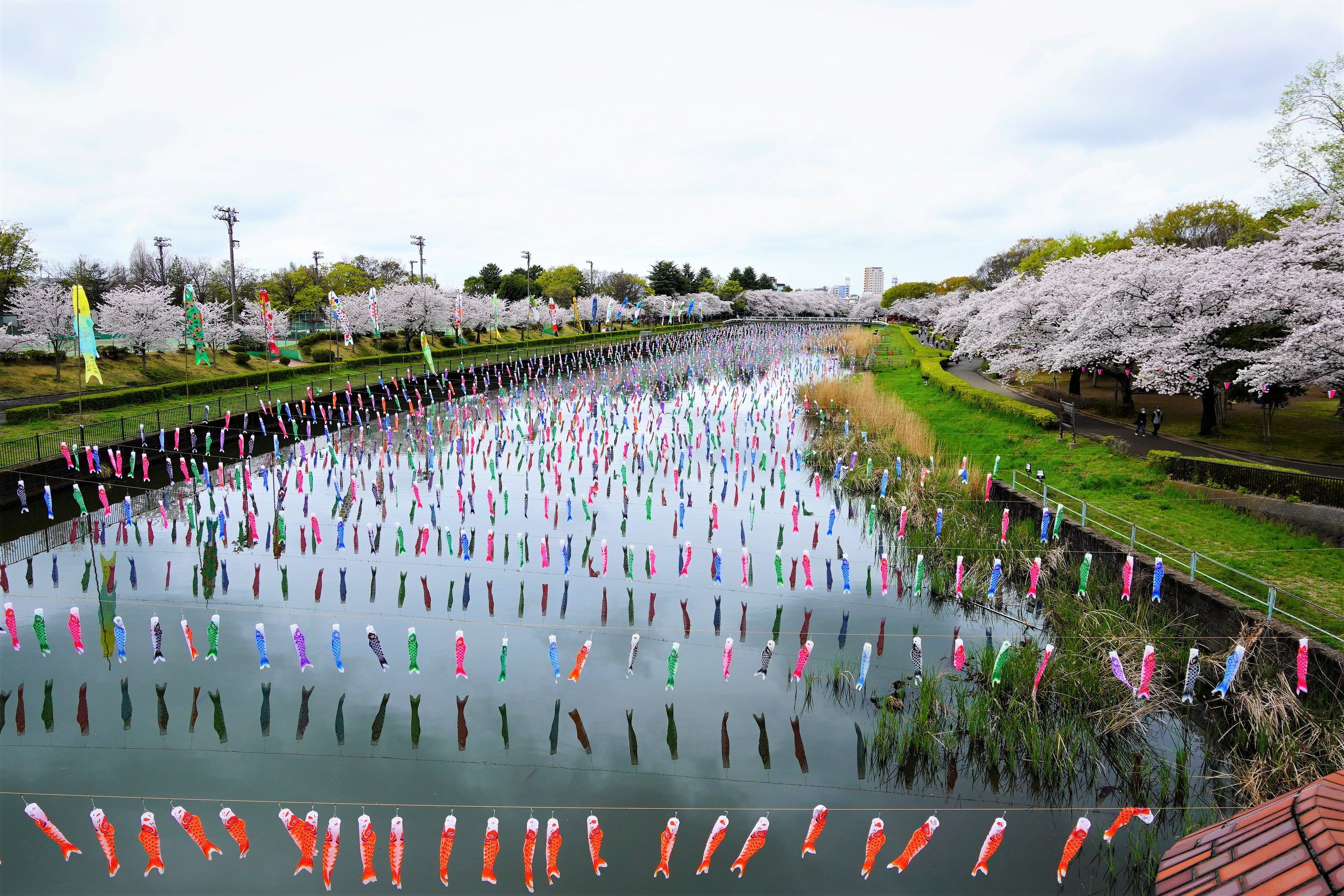 曇り空だったのが惜しい・・・ 風もなく、鯉のぼりは泳ぎませんでした。