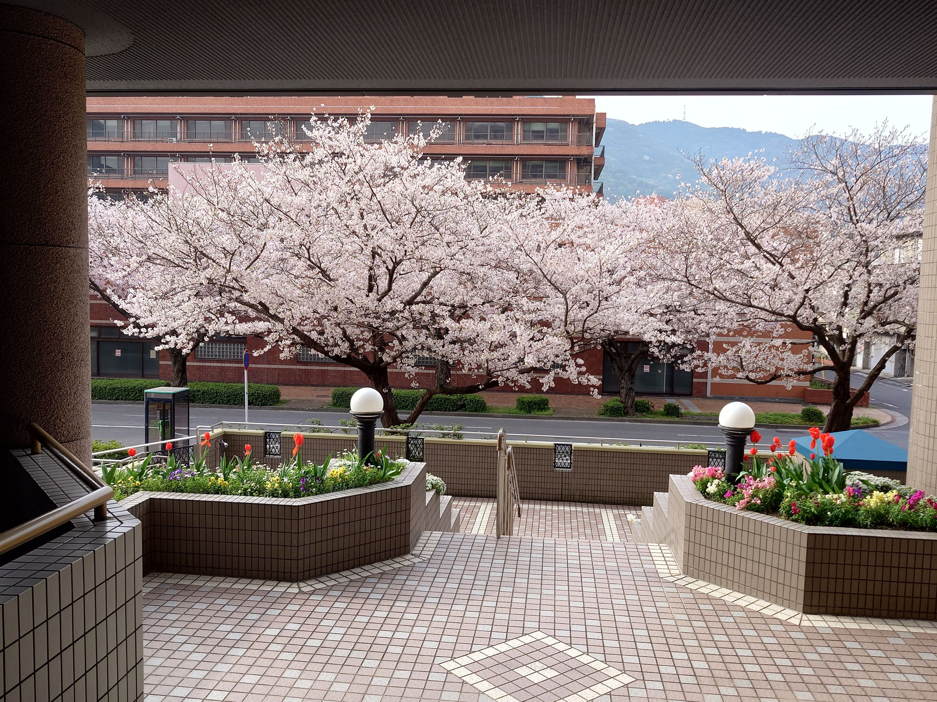毎年、綺麗な桜がマンション前に咲きます。 今年は花壇のチューリップがの方が早めに咲きました。毎年、楽しみにしてます。