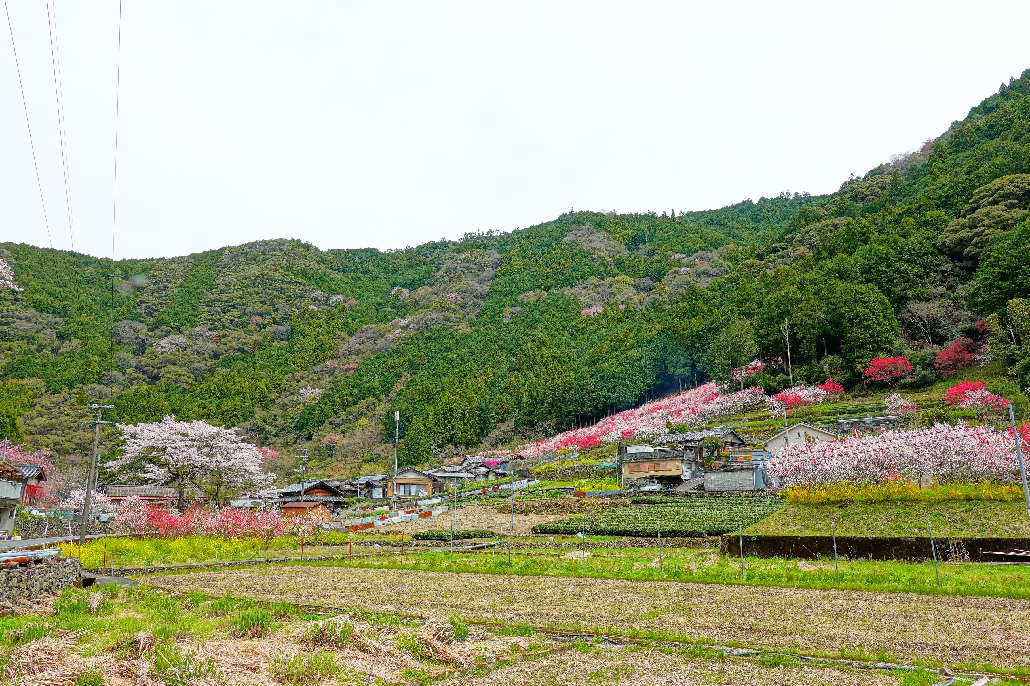 久喜の花桃 仁淀川町久喜地区にあり地区の新名所にと15年かけて植えてきた寒さに強い花桃。 上久喜の花桃への道中にあり、地元住民が大切に育てた桃の木に赤・白・ピンクの花が咲き乱れるその景色はまさに「桃源郷」と呼ぶにふさわしい。出典:仁淀ブルー観光協議会HP