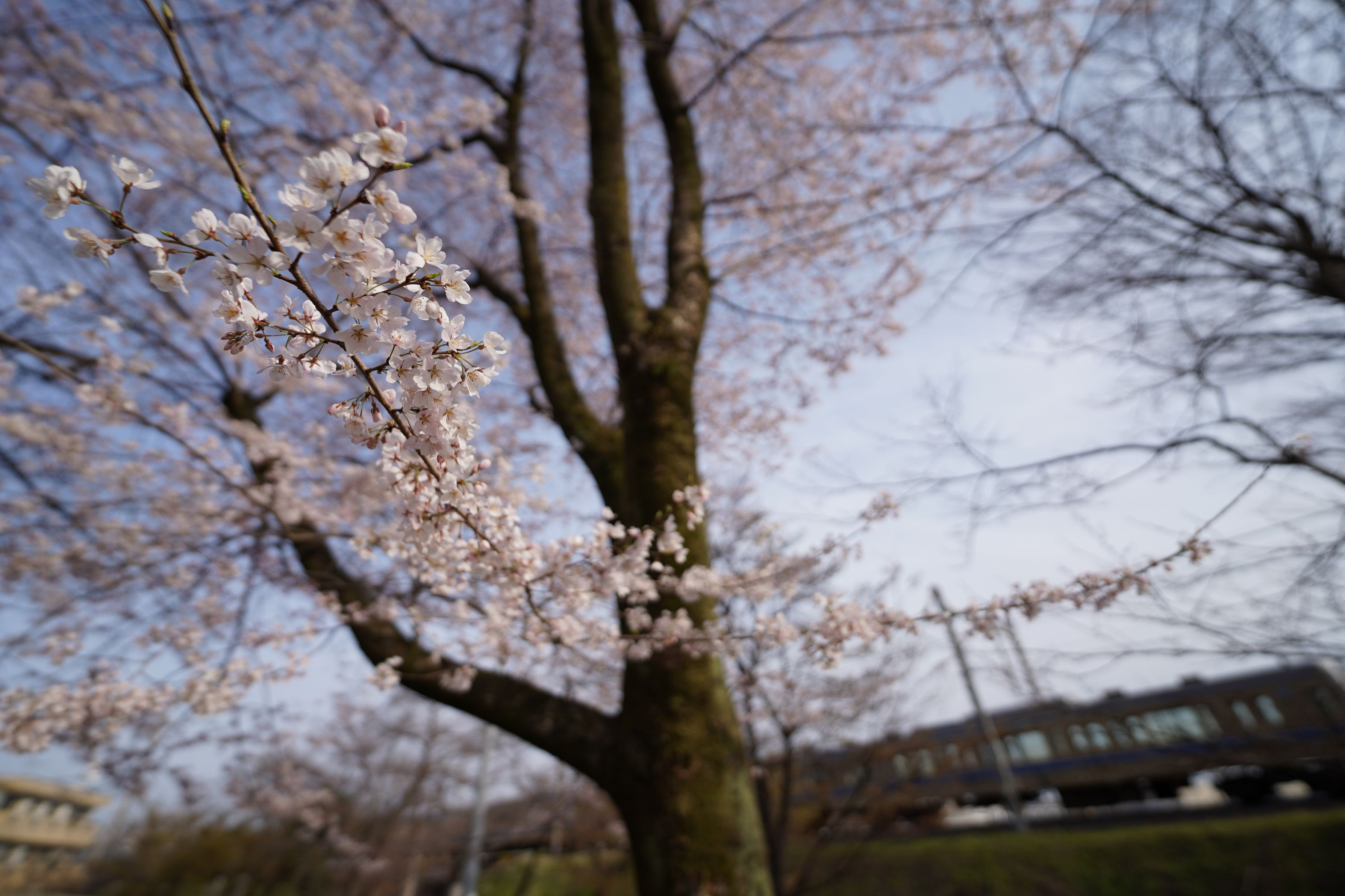 西武線と桜 #散歩 #五分咲き #電車 #超広角 #試し撮り