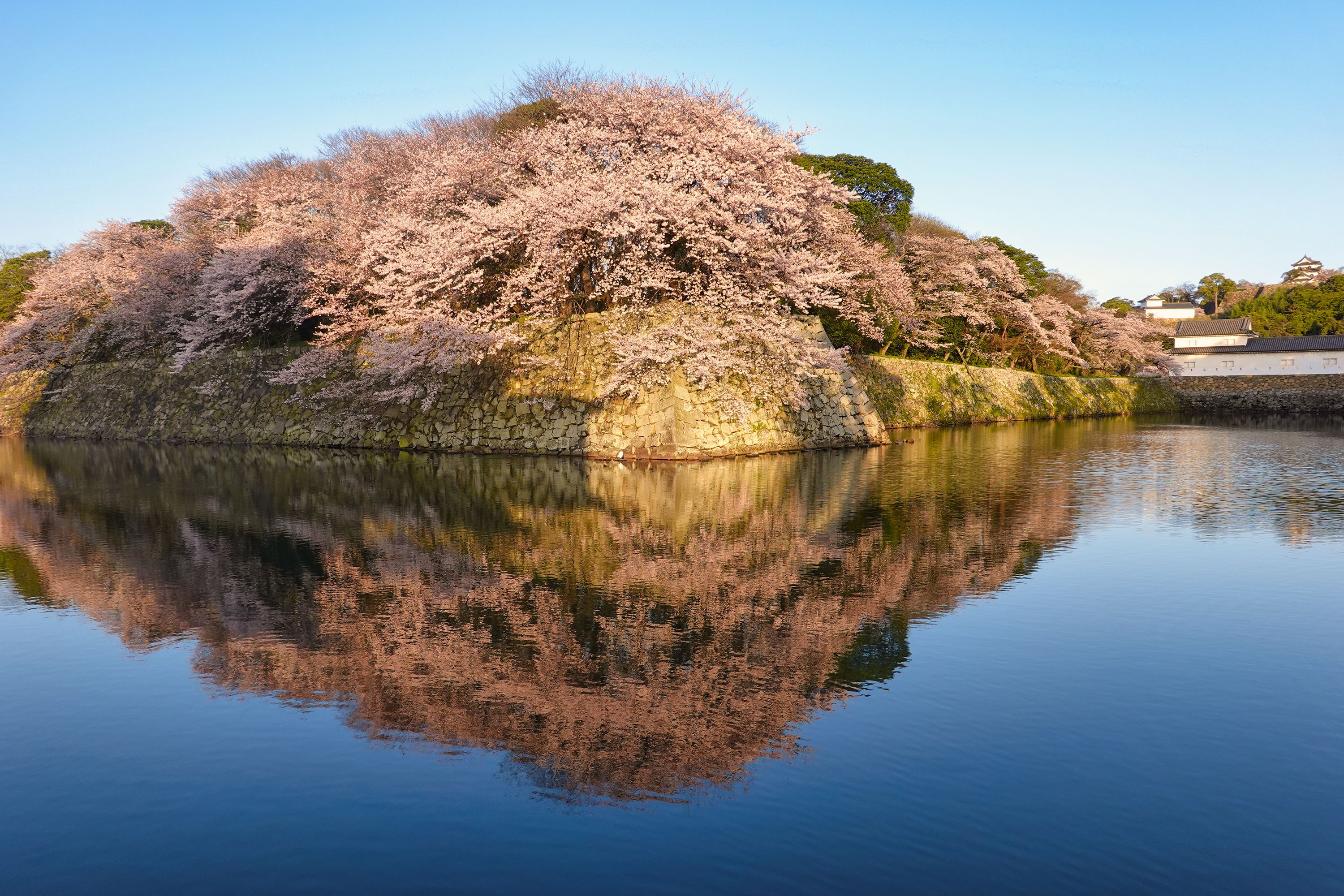 滋賀県彦根の桜といえば、やはりこのお堀のリフレクション。 日の出直後が美しい!