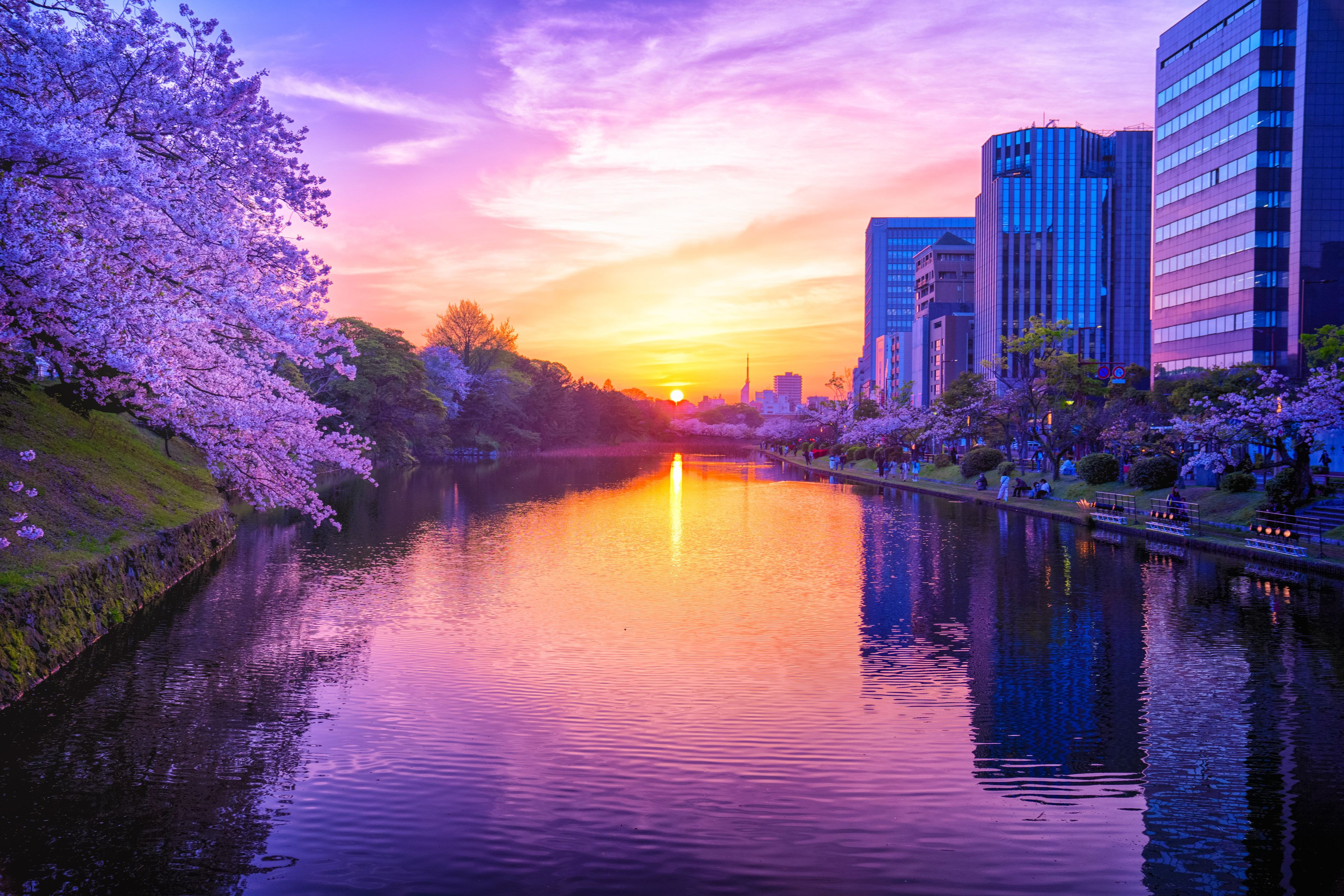 福岡舞鶴公園の桜です。 ライトアップされた夜桜も有名ですが、 夕焼けに染まる瞬間の桜がお気に入りです。
