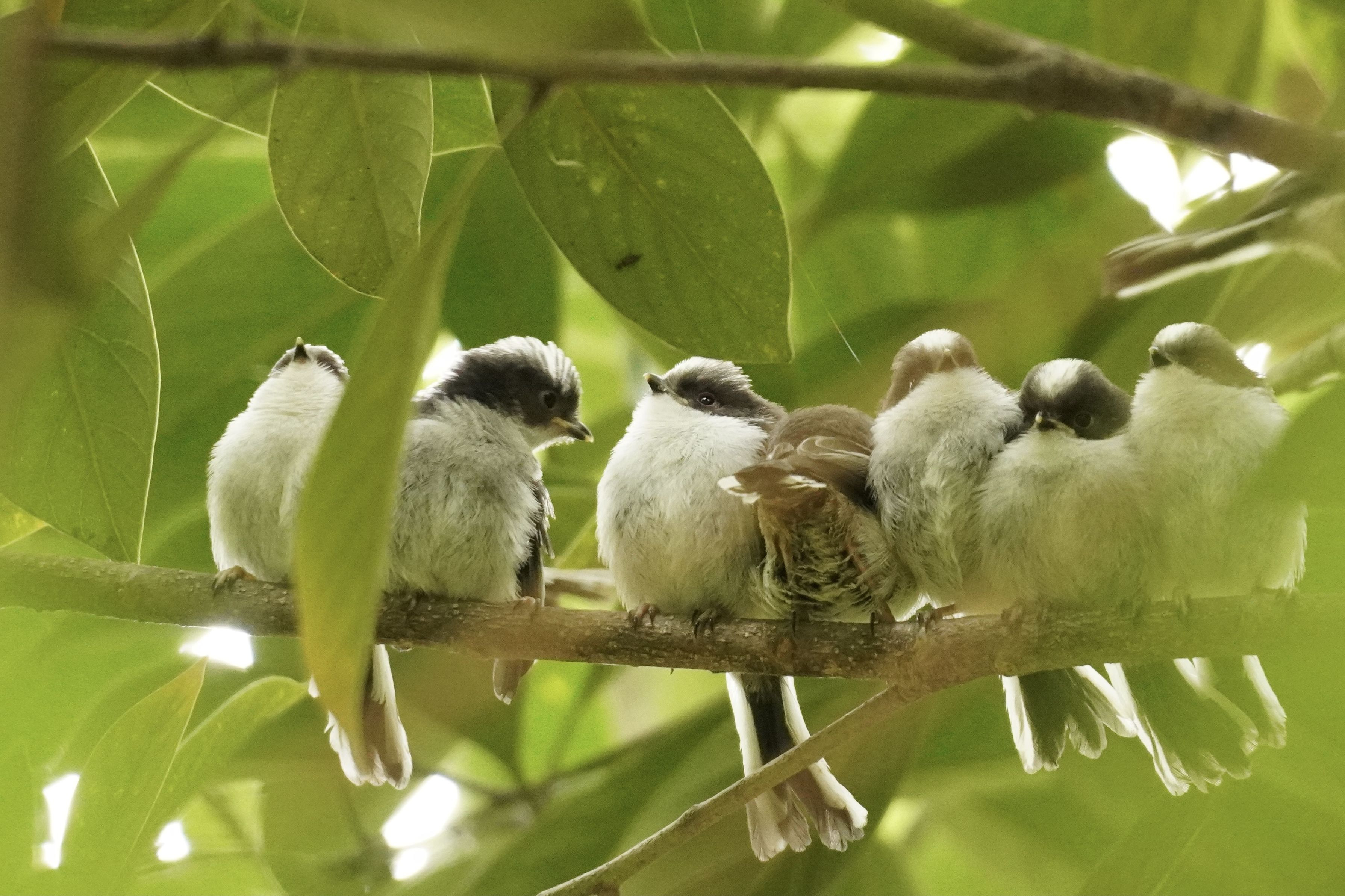 春のえなが団子、大好物! 枝の上で親鳥を待つ雛鳥たちの仕草、可愛いですよね