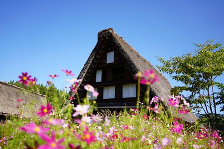 秋桜と合掌造