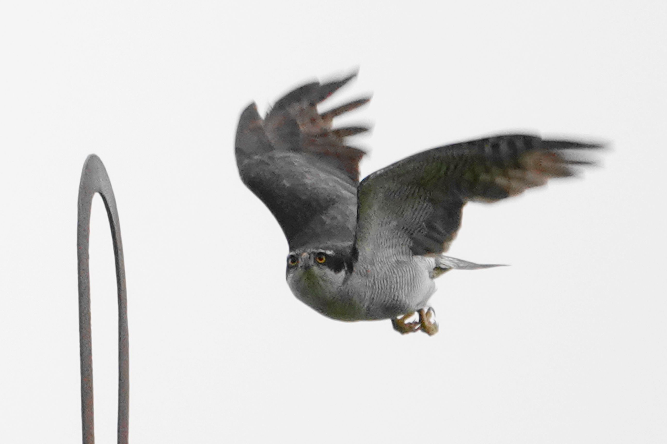 煙突に止まっていたオオタカの飛翔の瞬間をとらえました。