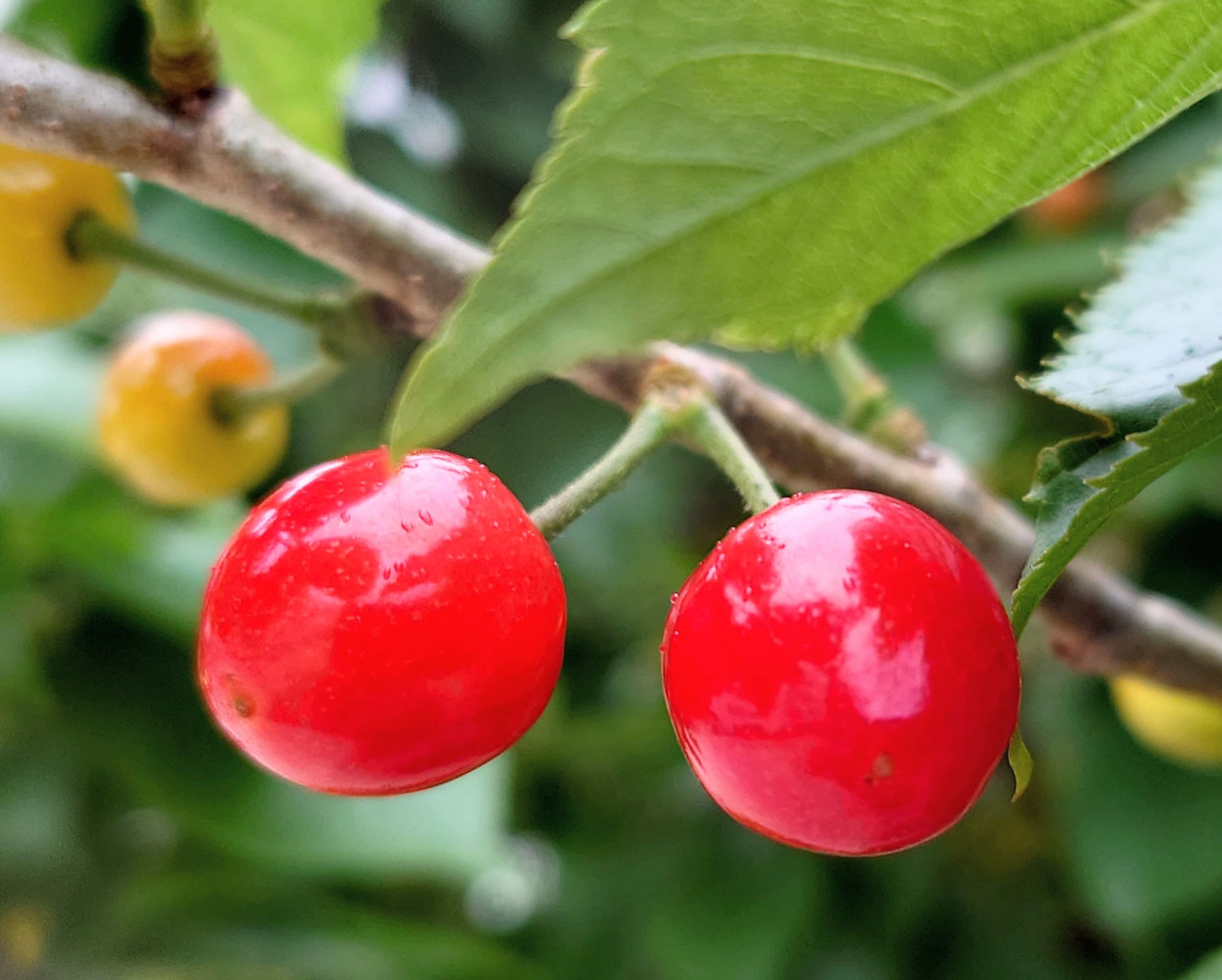 庭のサクランボの木に実が実りました。