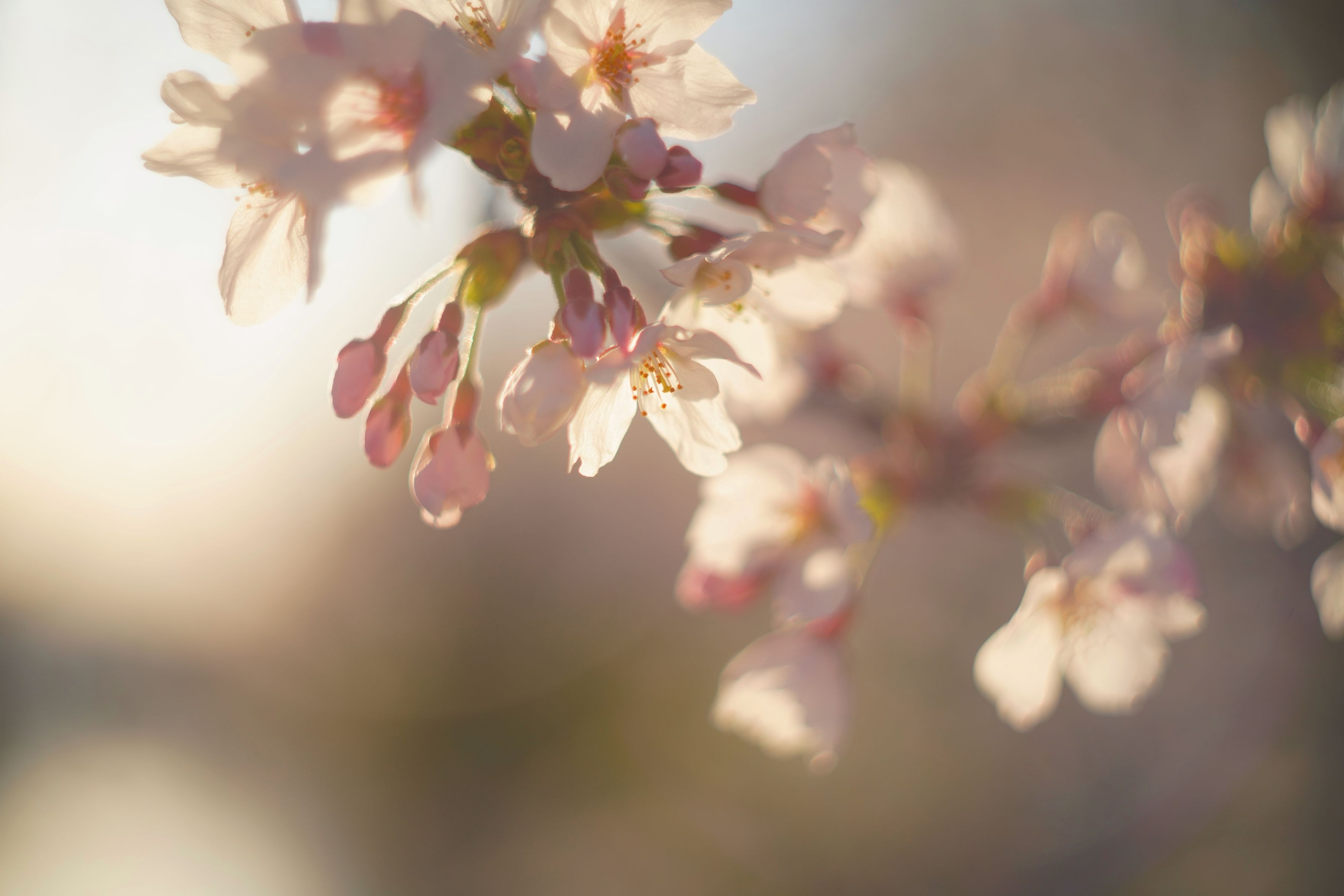 夕暮れの光の中、桜が輝いていました。