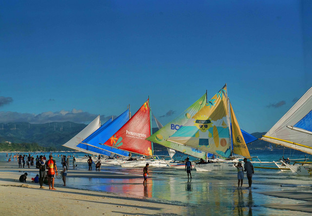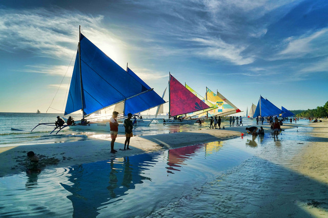 製品情報>My Sony>αcafe>夕焼けツアーのヨットがビーチに集まる(mizoroさん)