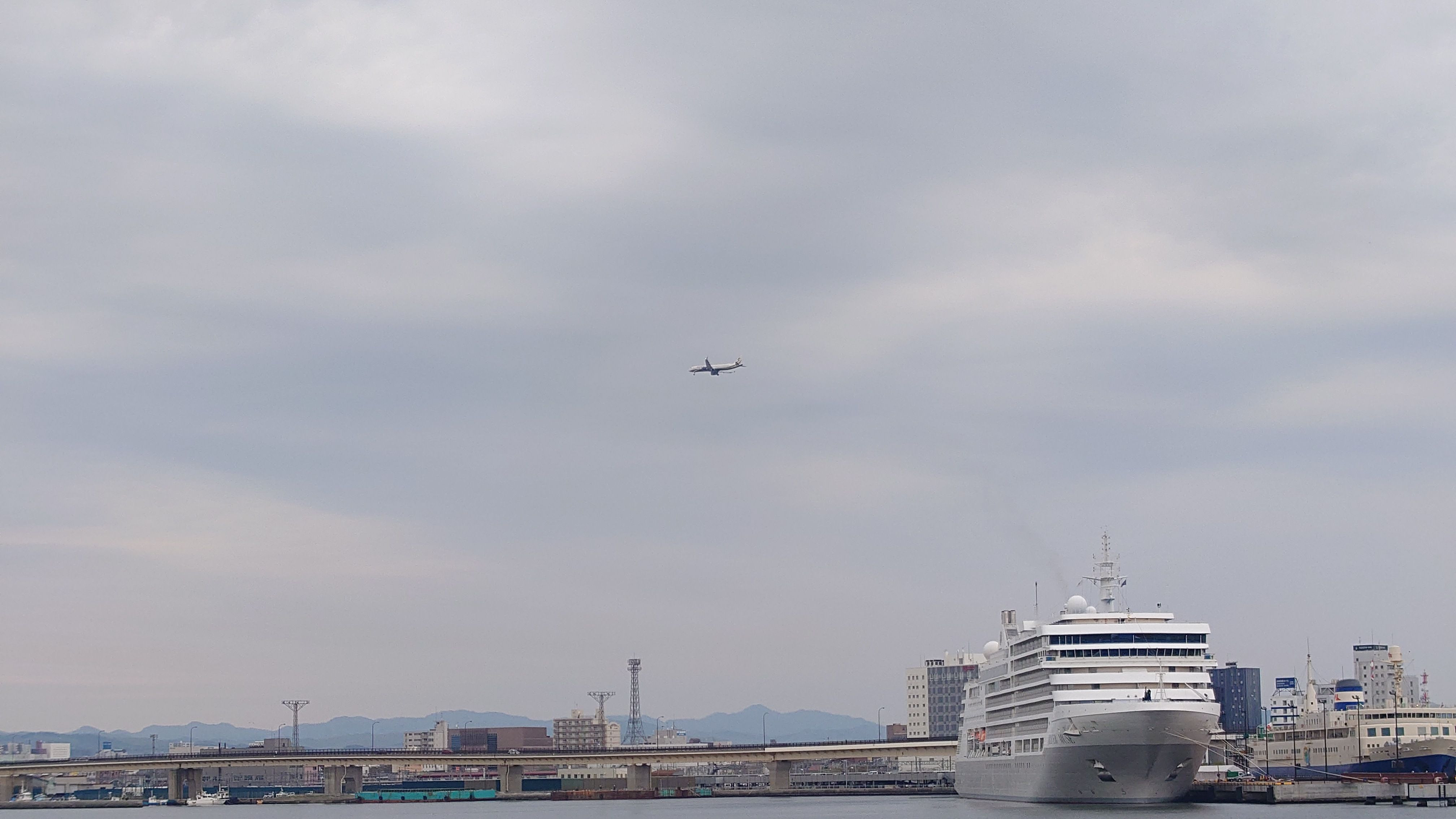 大型客船と飛行機の撮影