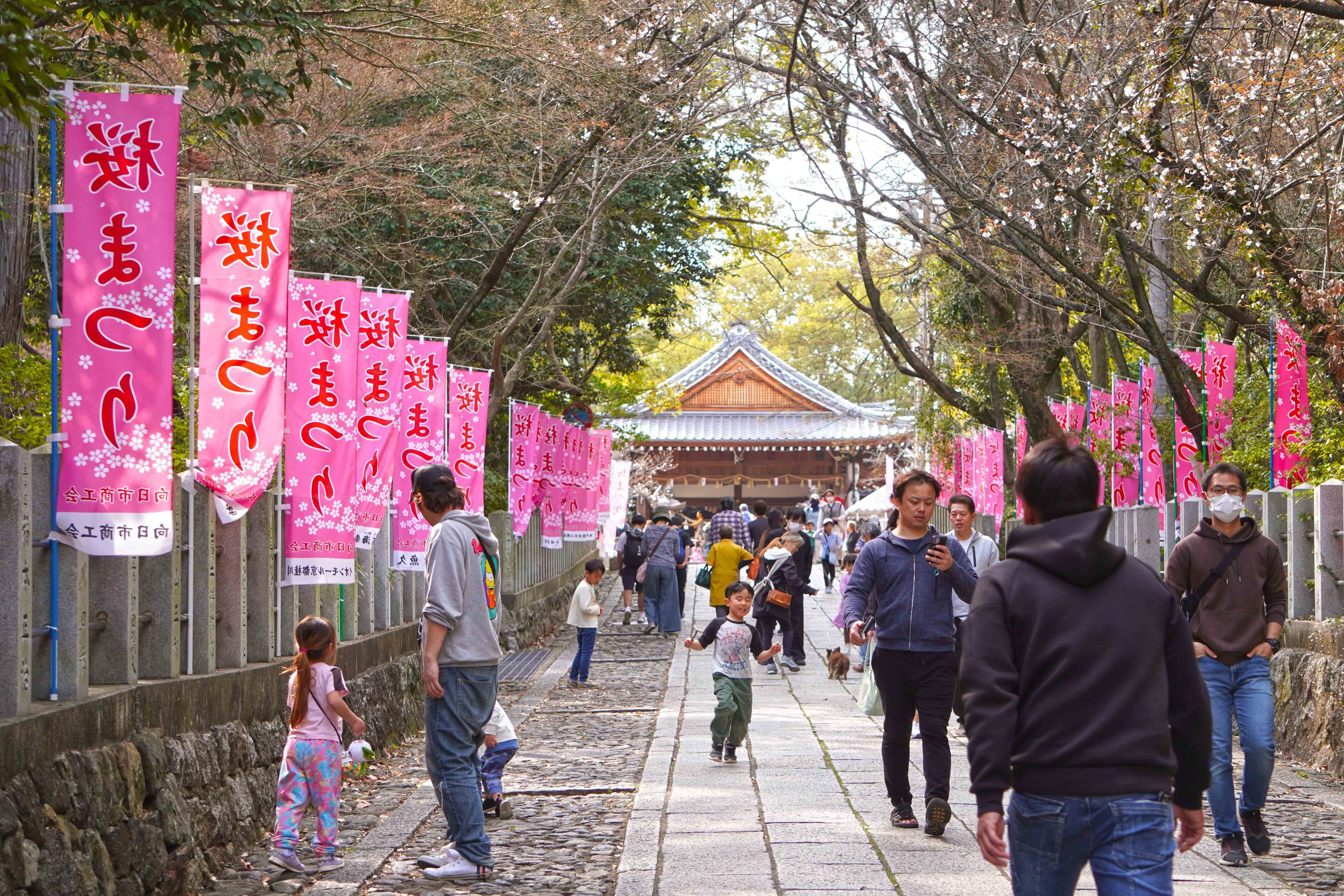 老若男女問わず皆で地元 向日市の向日神社桜まつりを 楽しんでいる写真です。 春が来た、春が来た。 暖かくなり、気持ちも ルンルンです。