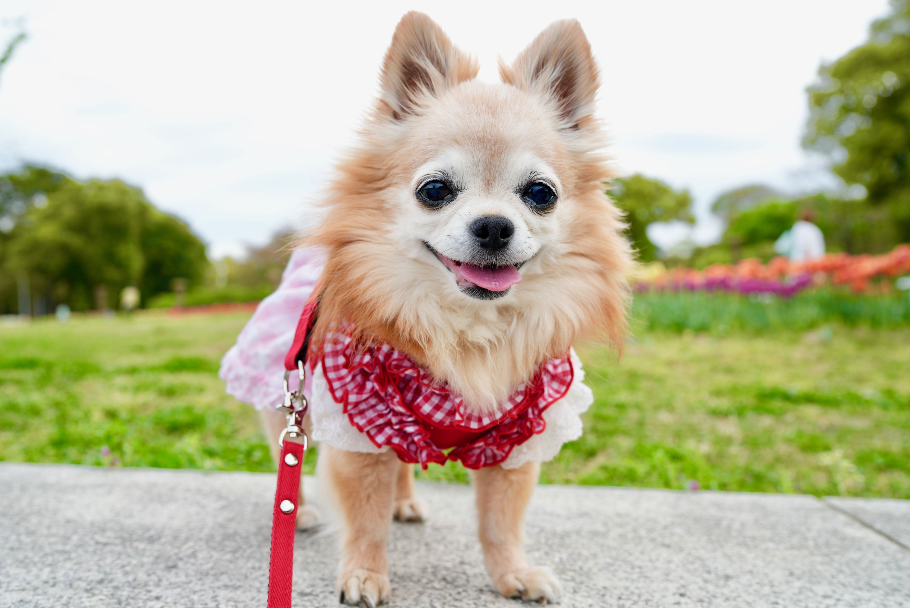 桜が終わった公園でチューリップがたくさん咲いてました。 たくさんのわんちゃんがいるのでちょこも張り切ってリードつけて散歩を楽しみました。 #フラワー2025#