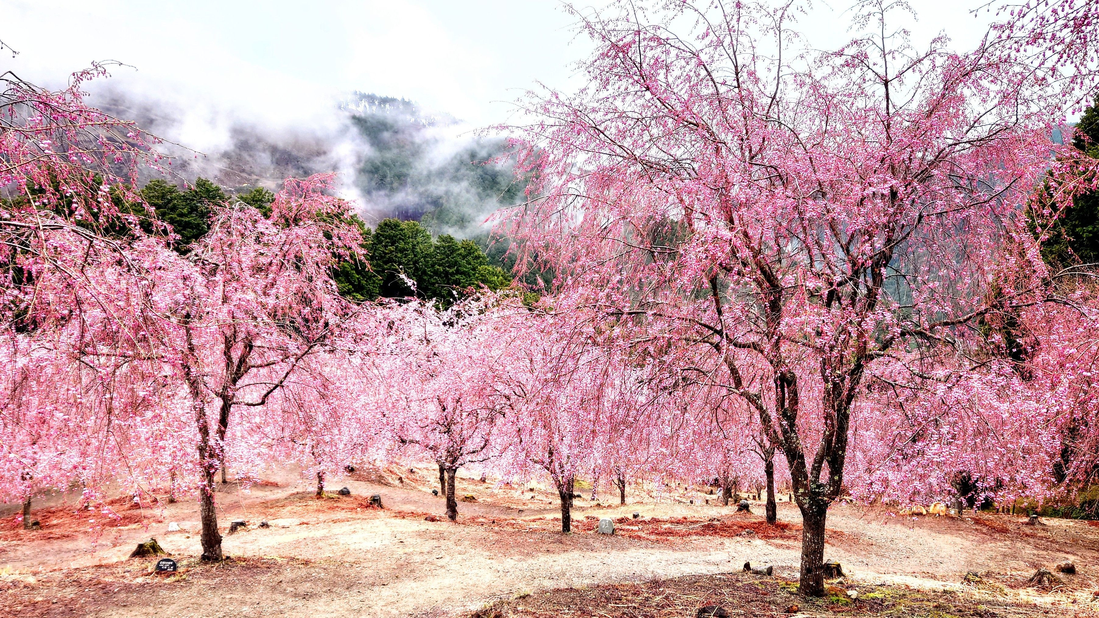 奈良「高見の郷」。 枝垂れ桜を山肌に植林された観光地。