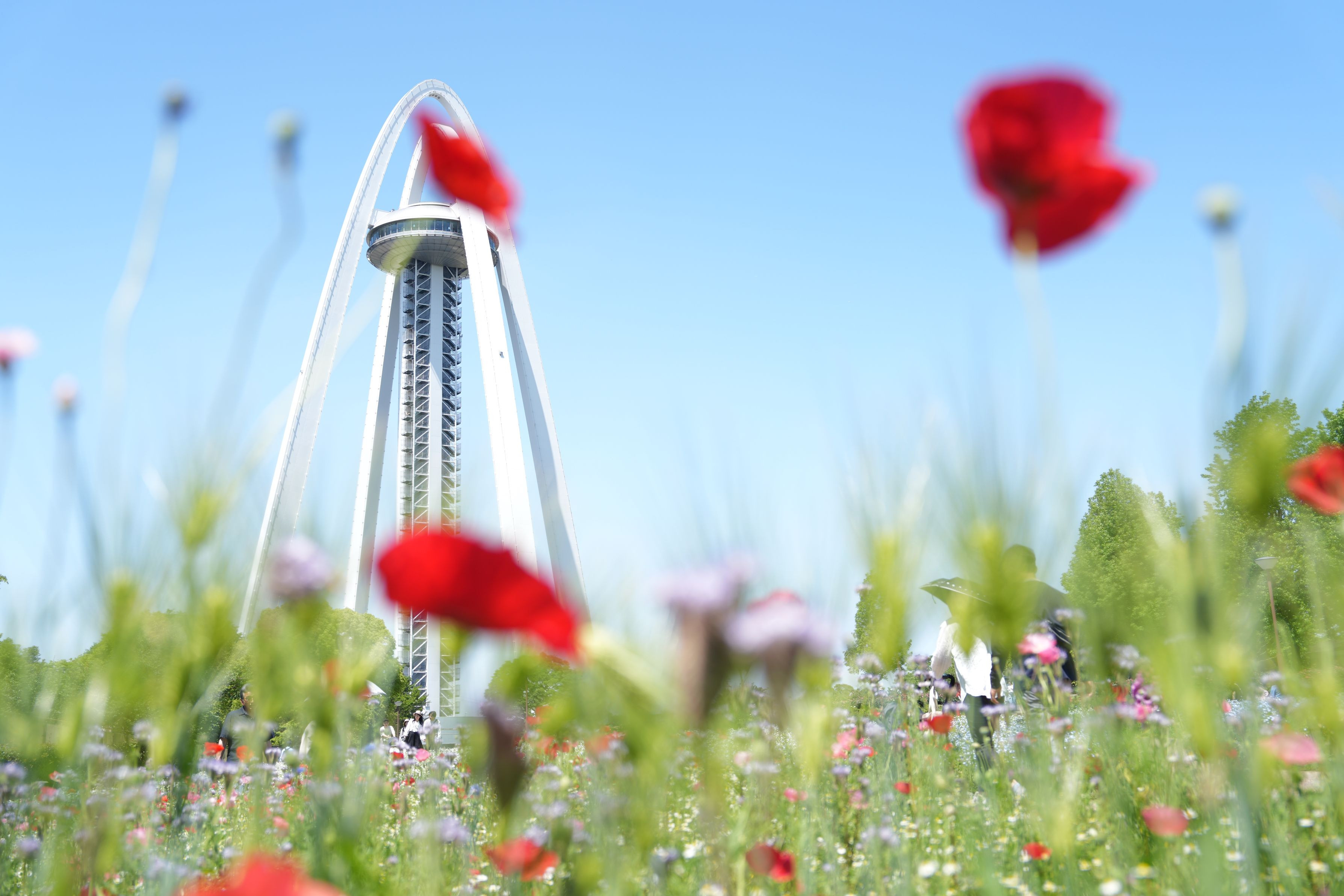 季節の花を前ボケに、地元のランドマーク「138タワー」を撮ってみました