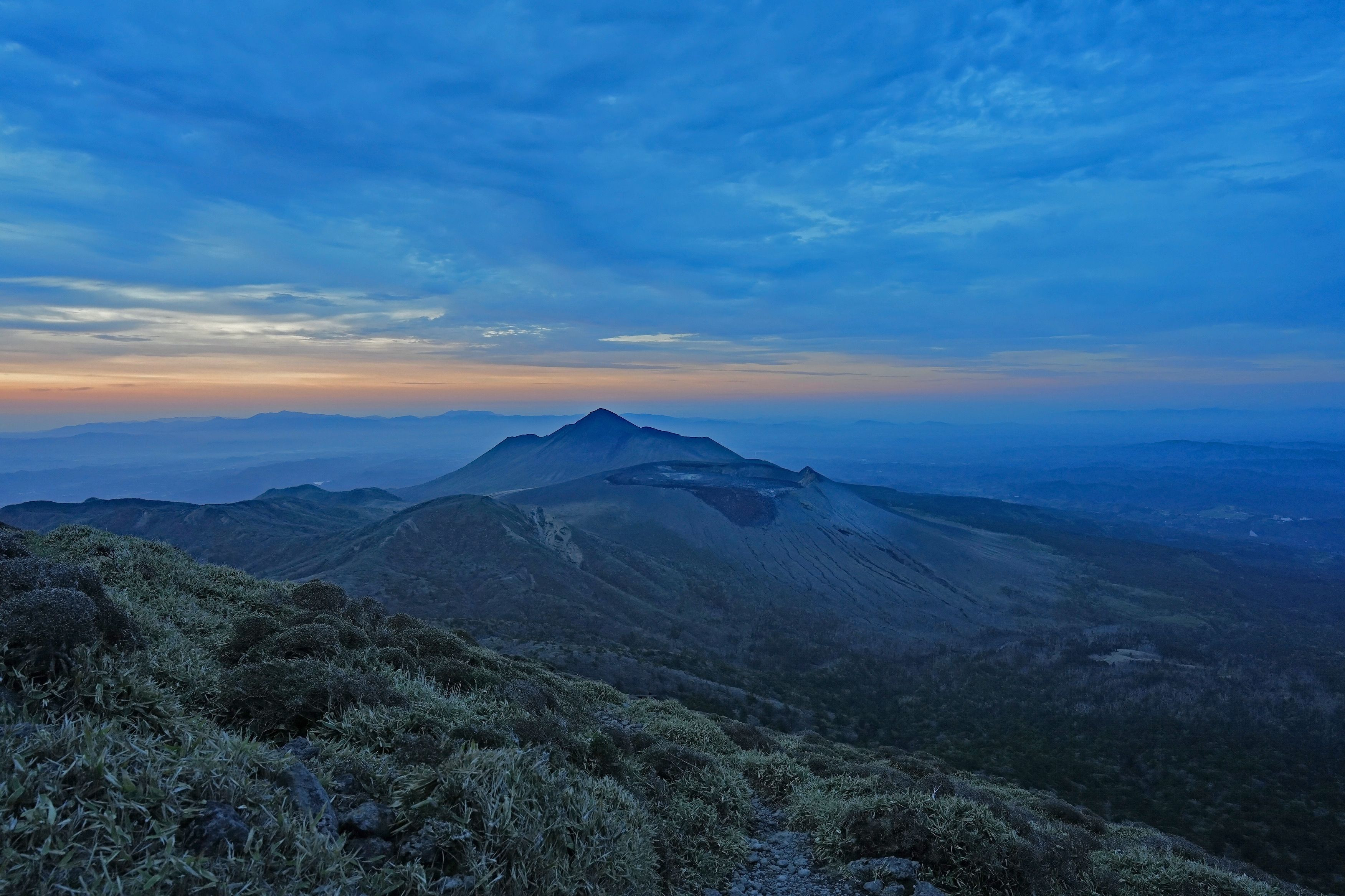 九州 霧島連山の韓国岳山頂早朝の写真です。