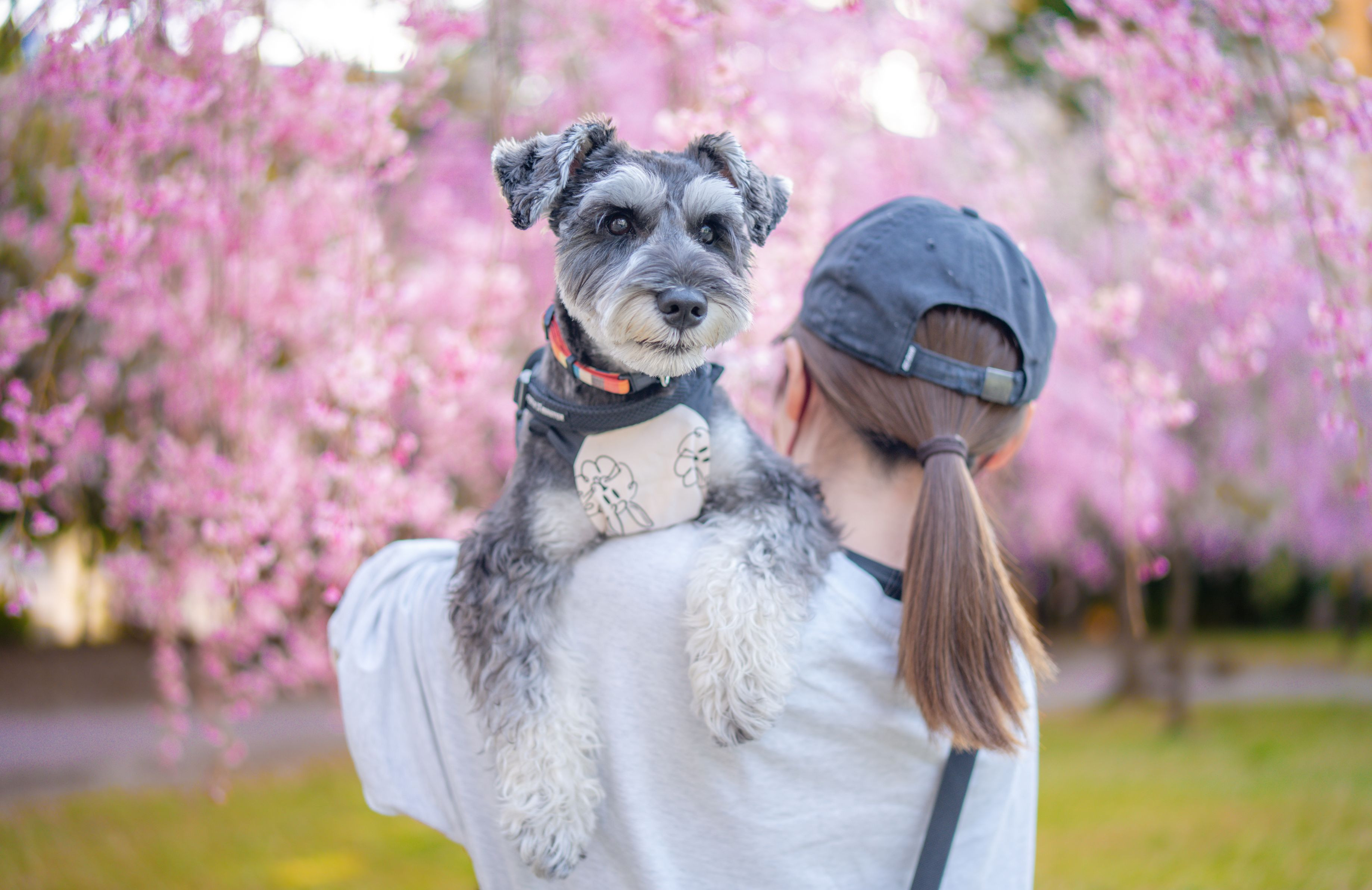 桜を愛でる犬