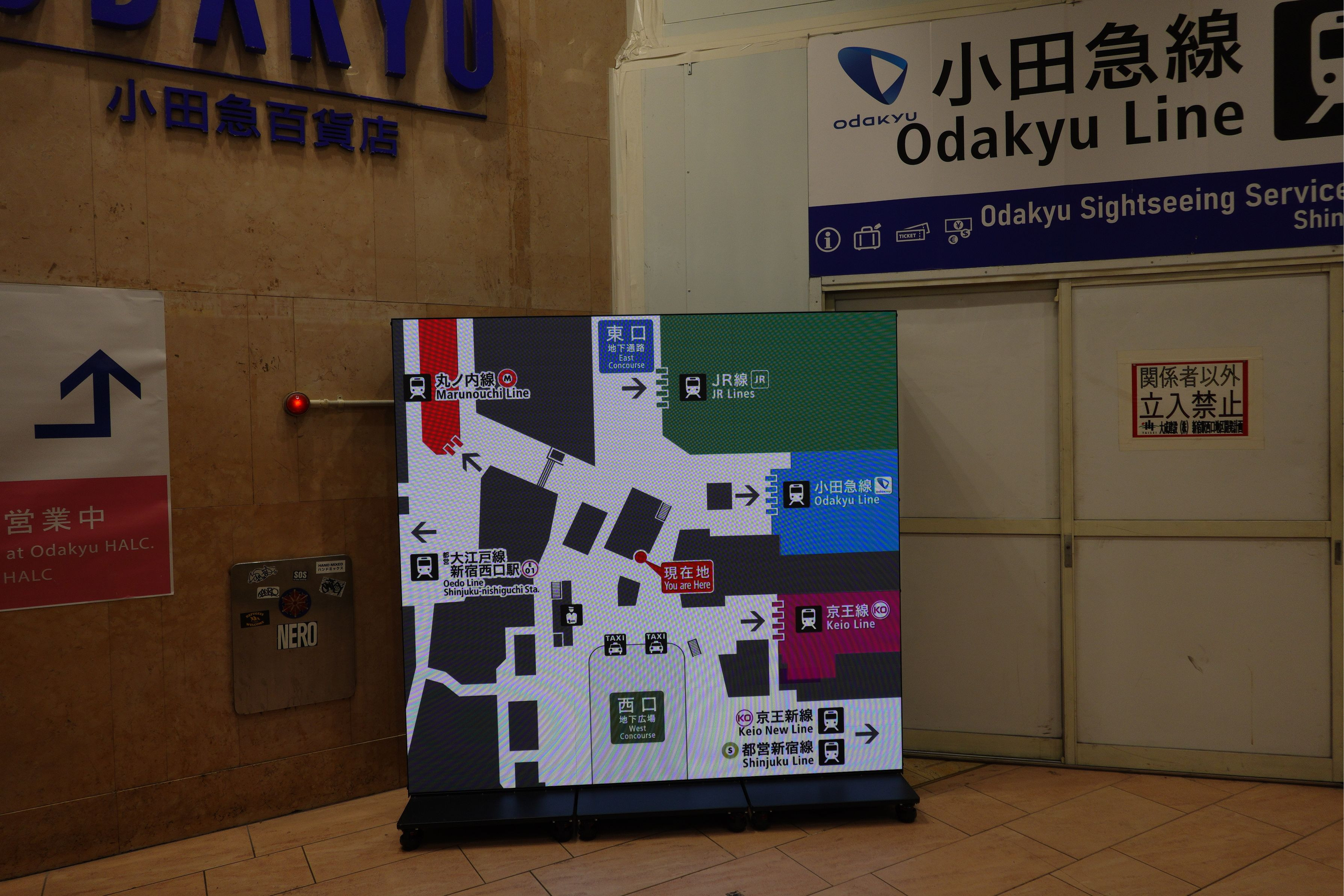 新宿駅西口の動線は制限されております。平面的な移動は確保されているので、渋谷駅よりはましか。