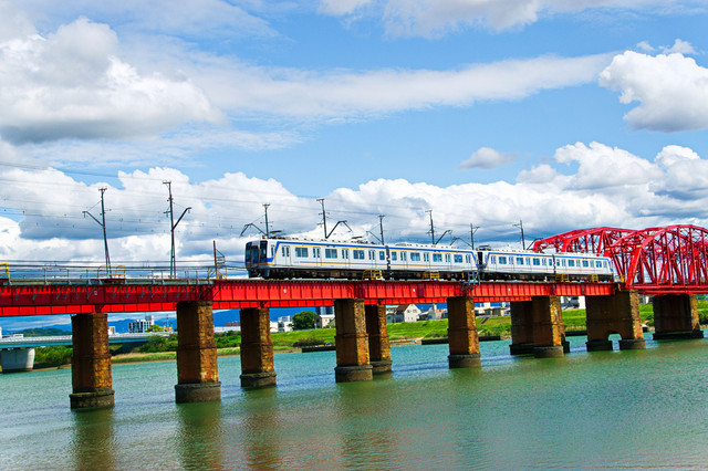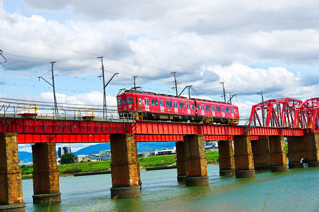 紀の川橋梁の南海電車