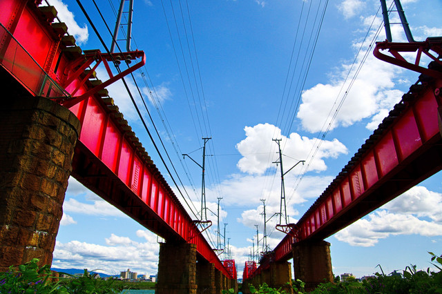 赤い橋梁を走る