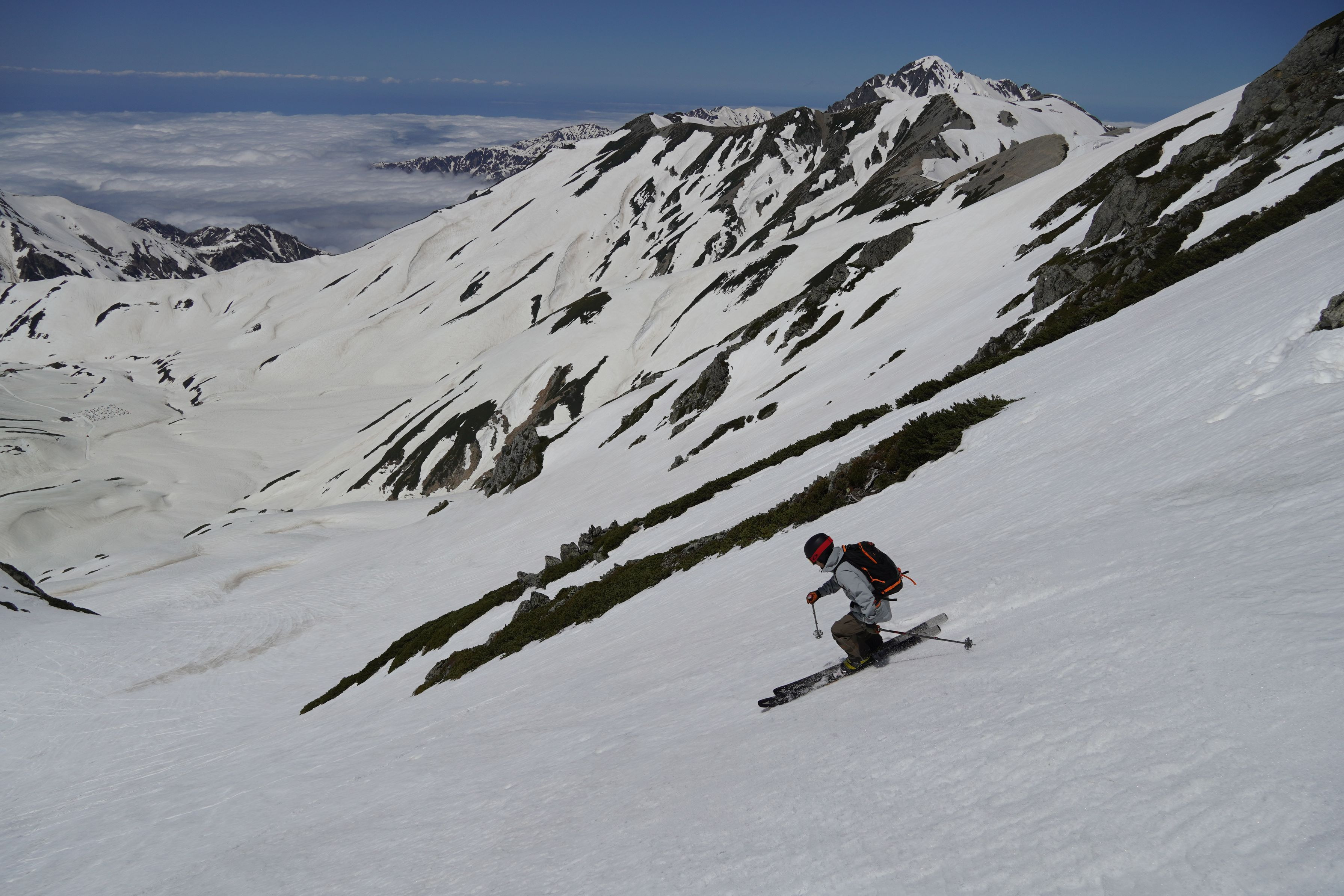 急斜面へdropinの瞬間です