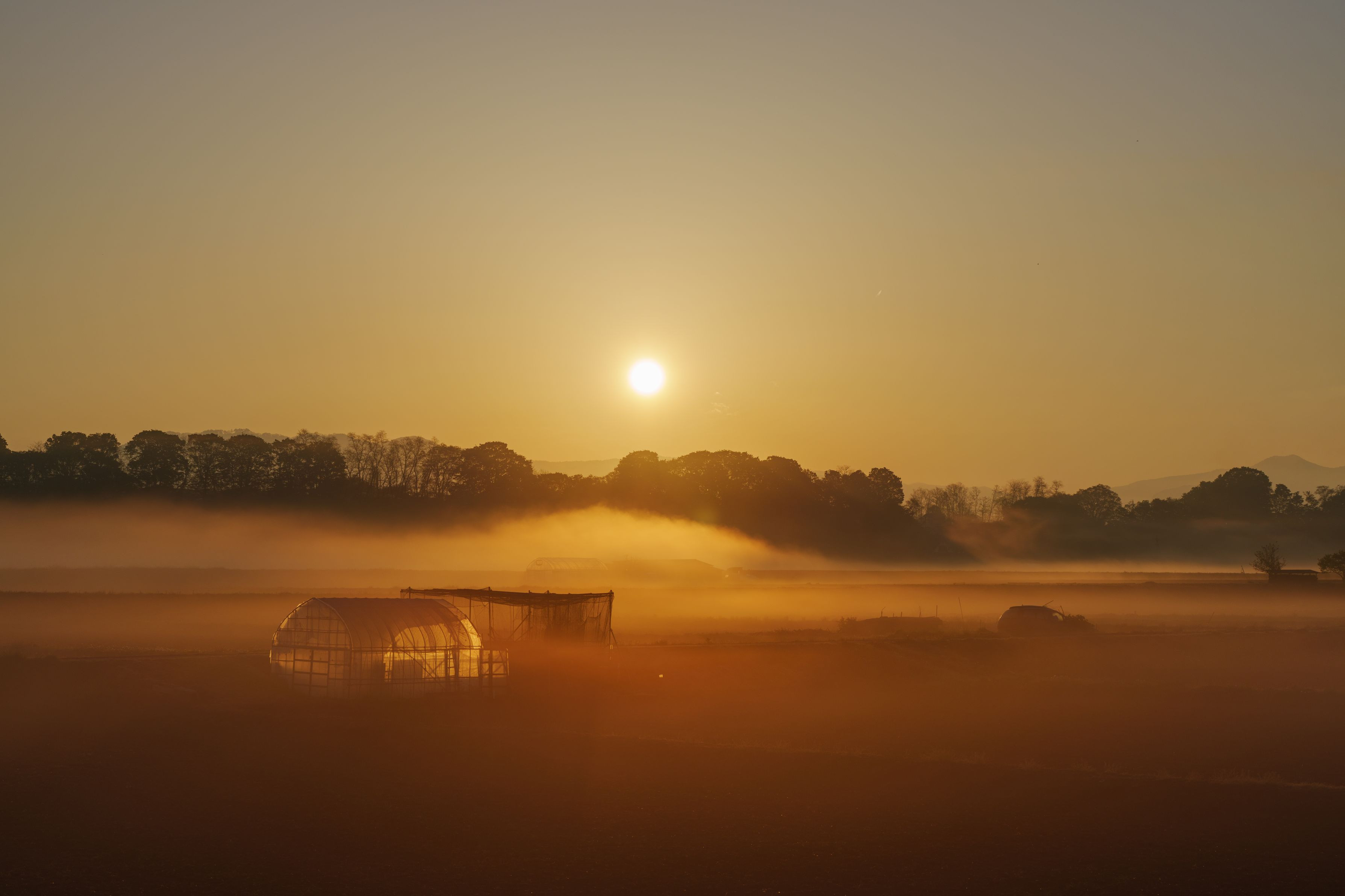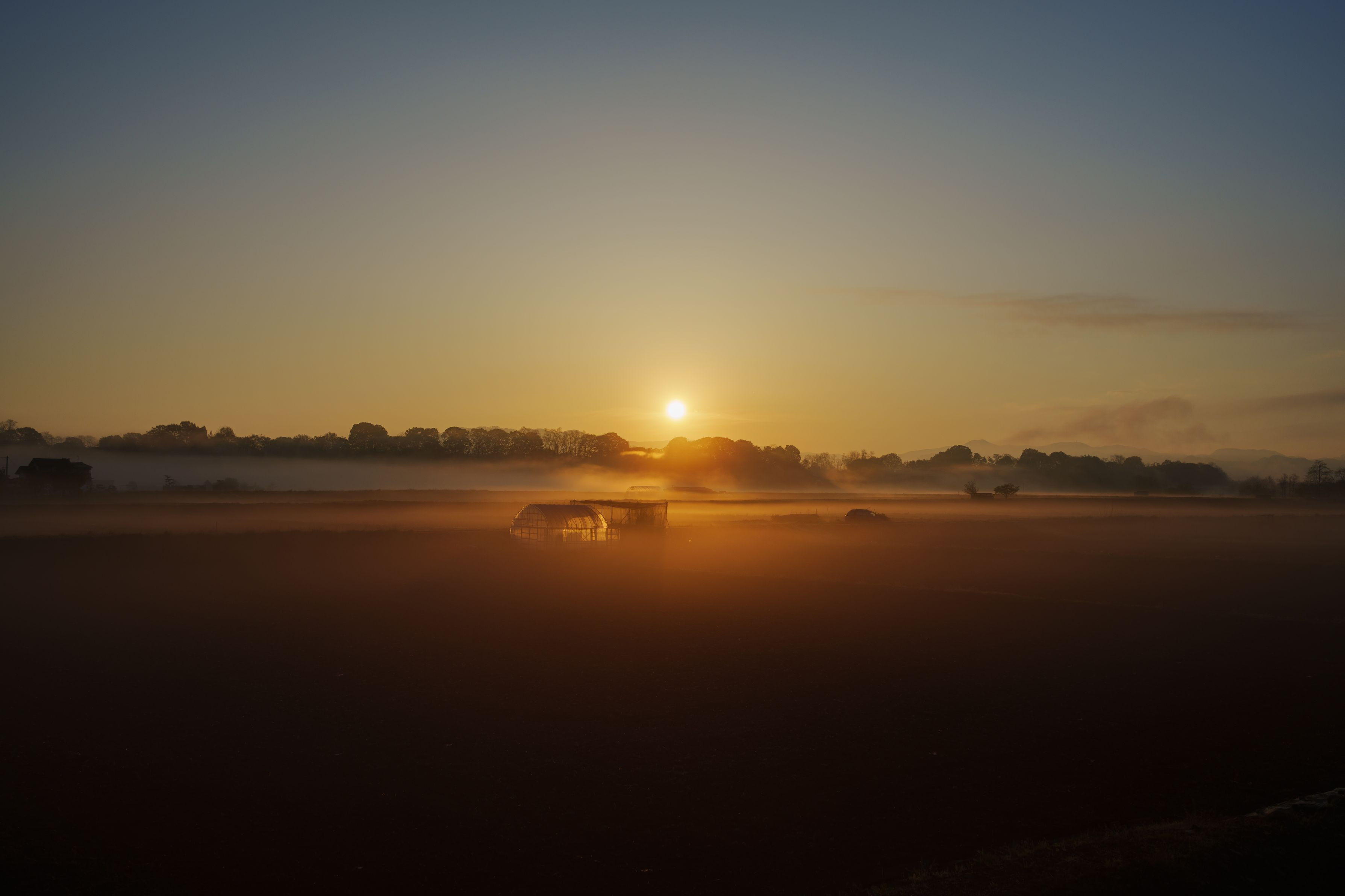 GWの晴れた日の出、朝もやが幻想的でした。