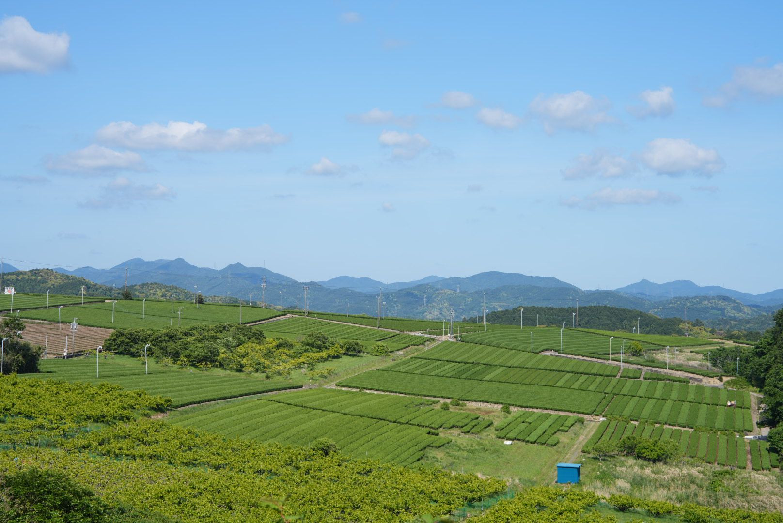 静岡県の収穫の終わっていない茶畑の風景を撮りました。