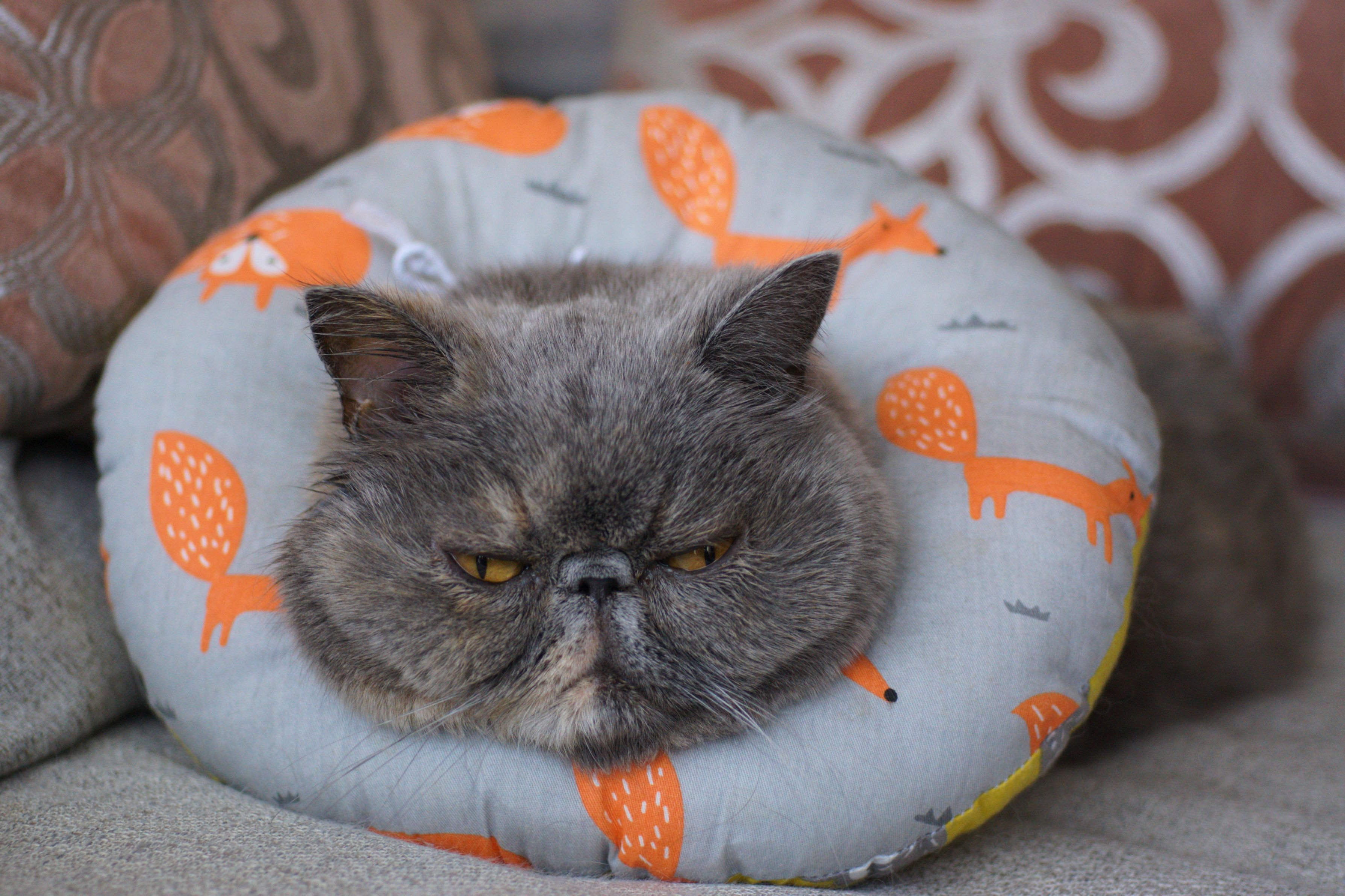 怪我でカラーつけてるから ご機嫌斜めに見えますが くつろいでる最中ですよ~ #ペット自慢2024_ネコ#
