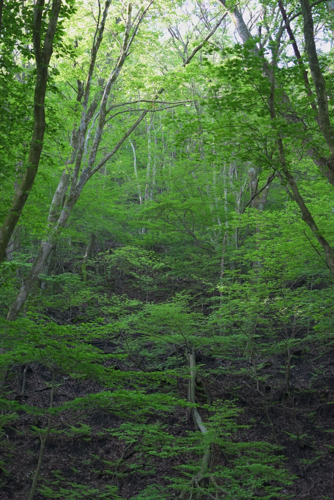 早朝の山歩きとても目に優しい光です