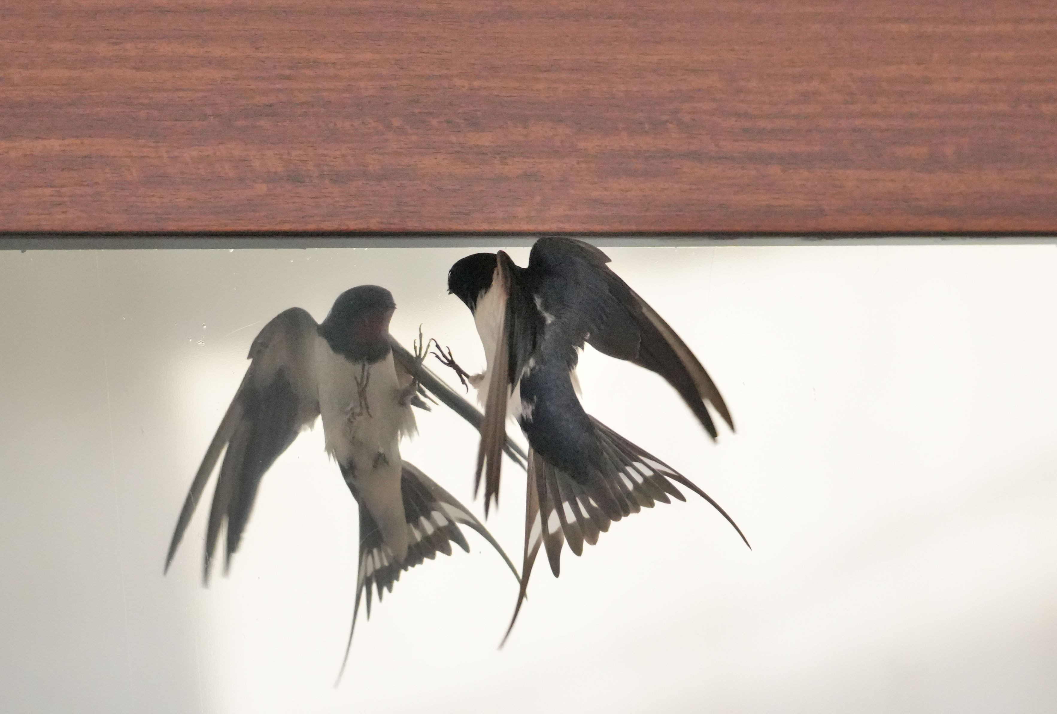 窓ガラスに映った自分を敵とみなして攻撃するツバメ #ツバメ#