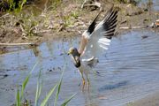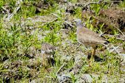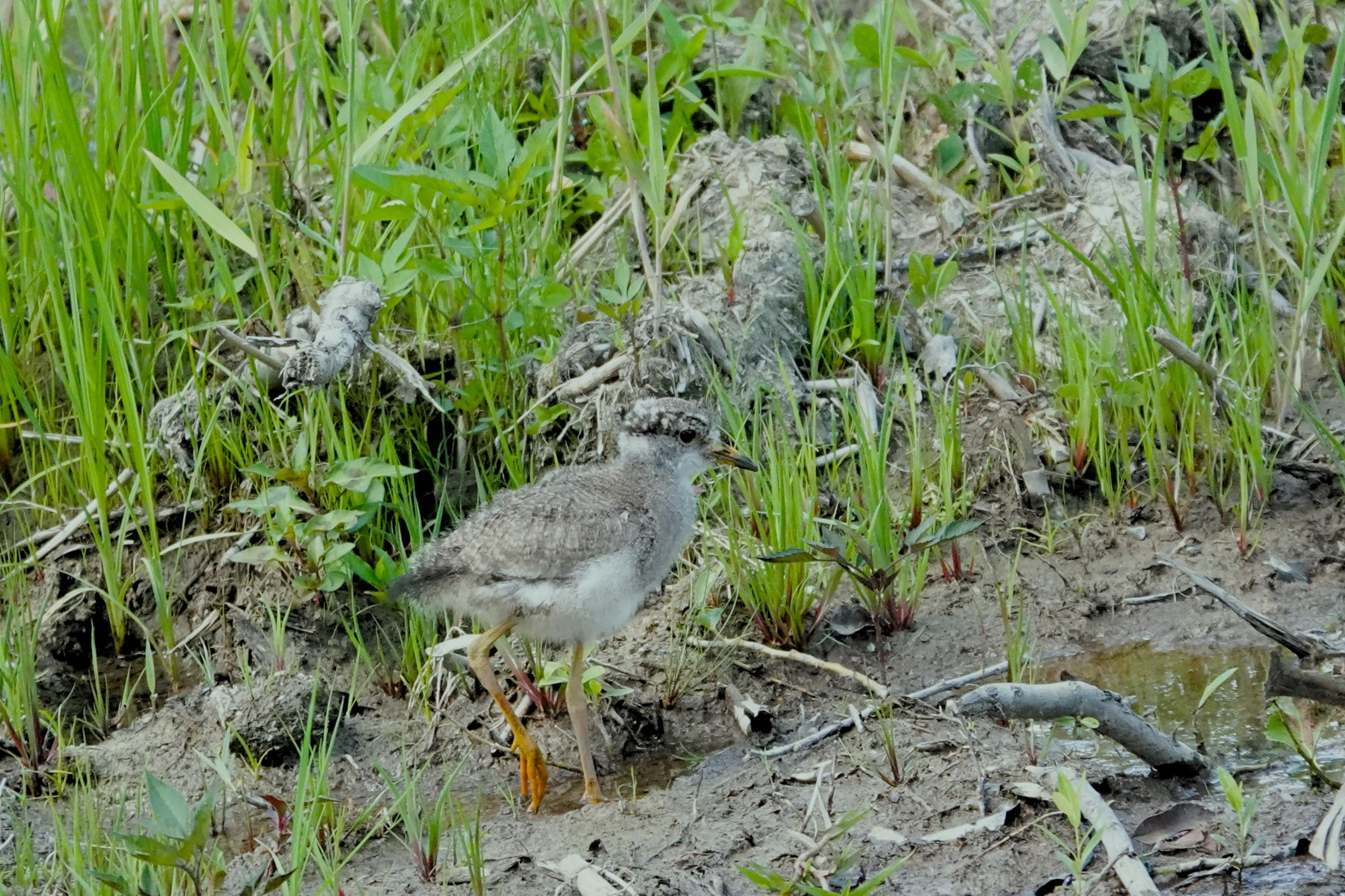東の公園まで出かけた時、#ケリ#が大きな声で威嚇していました。 探しましたら2羽の親と1羽の雛が餌を探して歩き回っていました。