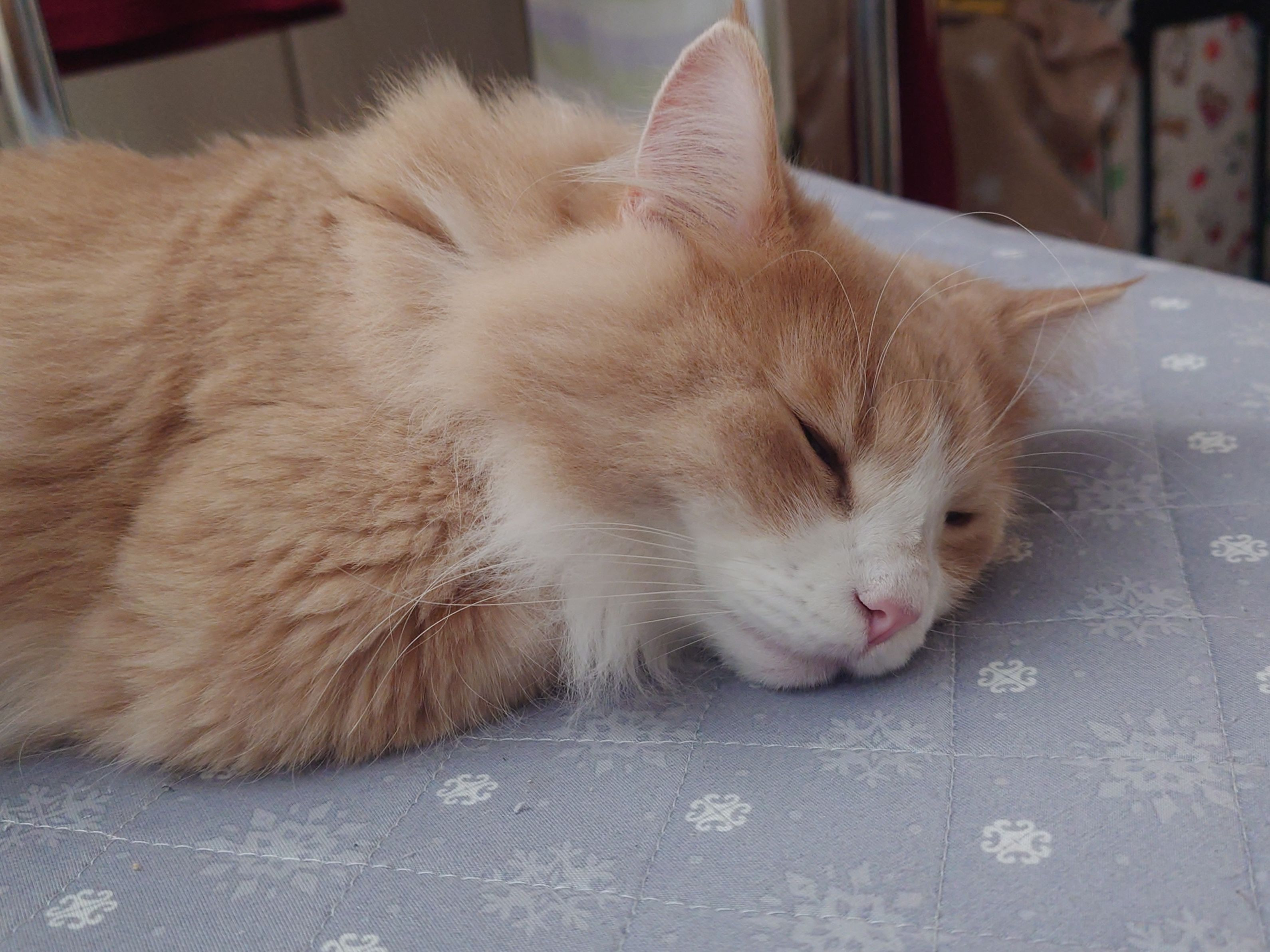 2歳のノルウェージャンホレストキャットのオスのQooです。おもちゃを全力で走り回って追いかけて疲れたかな?